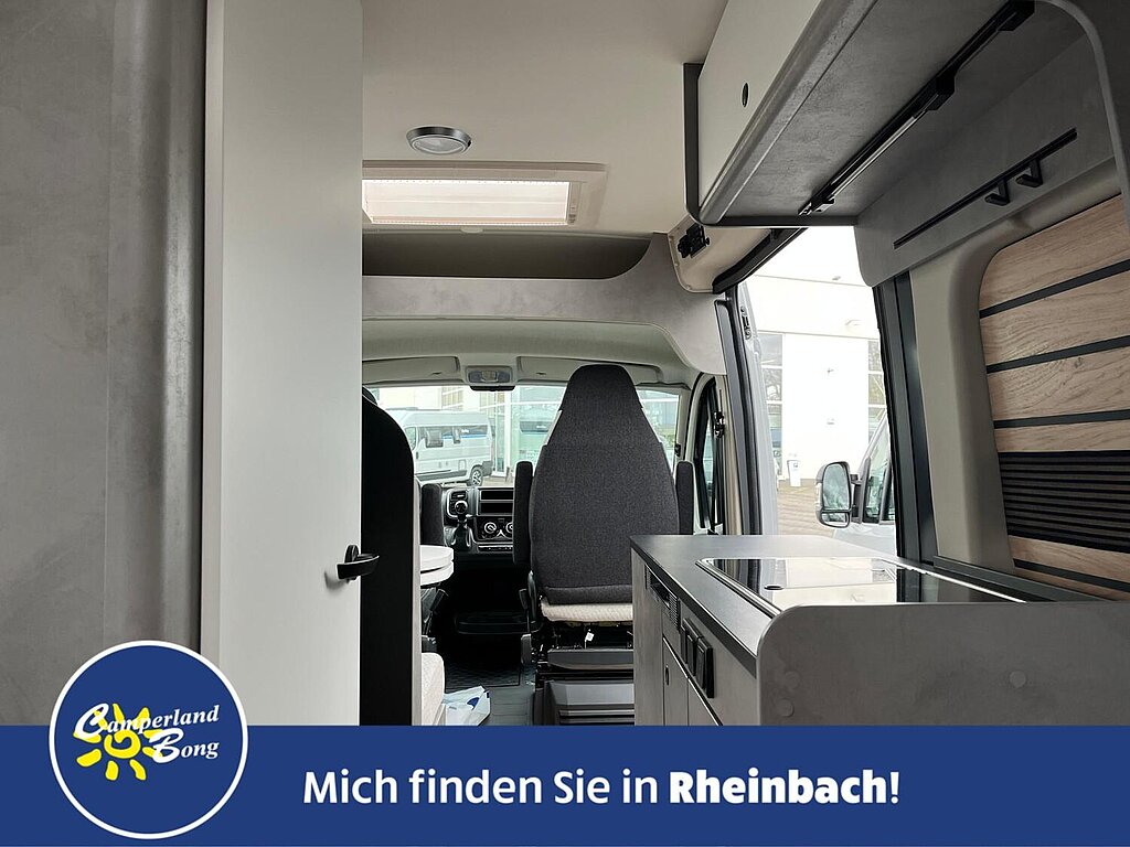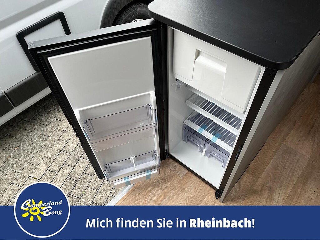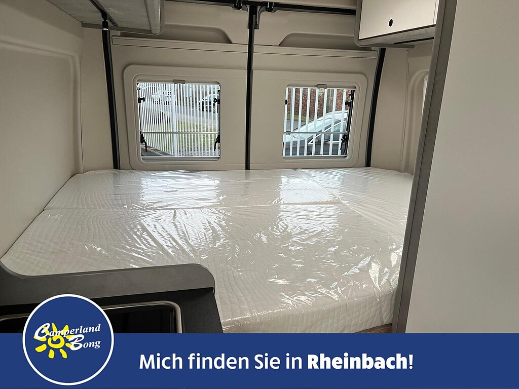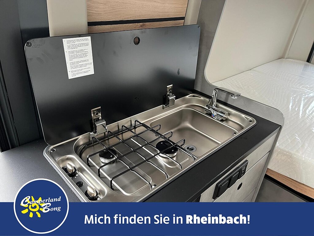 - Base Kit (Falt-Sichtschutz in Fahrerhaus: Frontscheibe, Falt-Sichtschutz in Fahrerhaus: Seitenscheiben, Dachhaube Midi-Heki 70 x 50 cm über der Sitzgruppe mit Fliegenschutz und Verdunklungsrollo, Rahmenfenster im Wohnbereich (in Hecktüren Ausstellfenster), Fenster im Bad, Elektrische Einstiegsstufe, Holzrost in der Dusche, Kleiderstange im Bad, Drehplatte für Tischerweiterung, Duschausstattung (Brausekopf ausziehbar, Duschvorhang, Führungsschiene, Brausehalter))