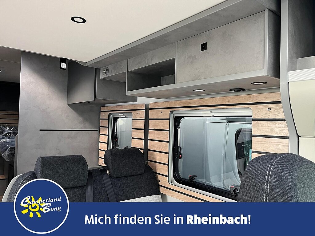 - Base Kit (Verdunklungsjalousien im Fahrerhaus, Fliegengitter-Aufbautür, Isofix Kindersitzbefestigung für 3. und 4. Sitzplatz in Fahrtrichtung, Duschrost, Light Moments: Indirekte Ambientebeleuchtung über den Dachstauschränken, Light Moments: Küchenrückwand beleuchtet, Light Moments: Fensterverkleidung im Wohnraum beleuchtet)