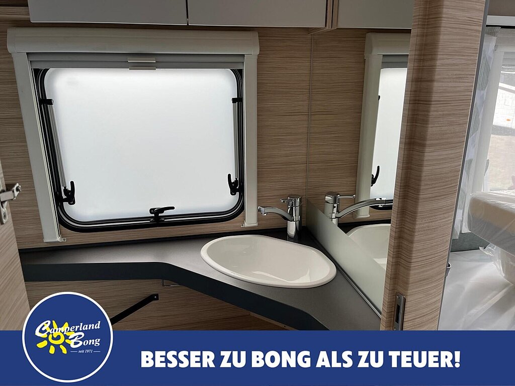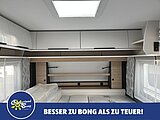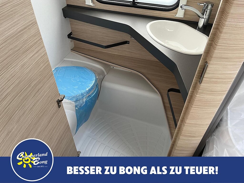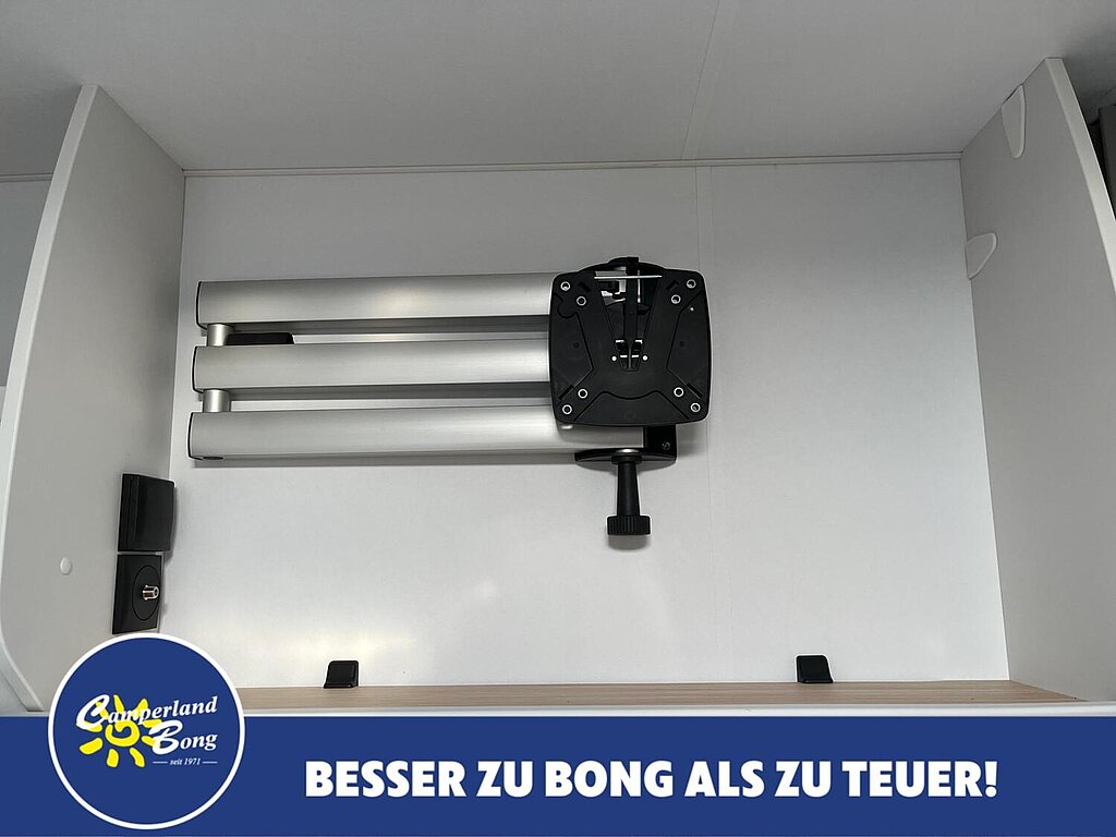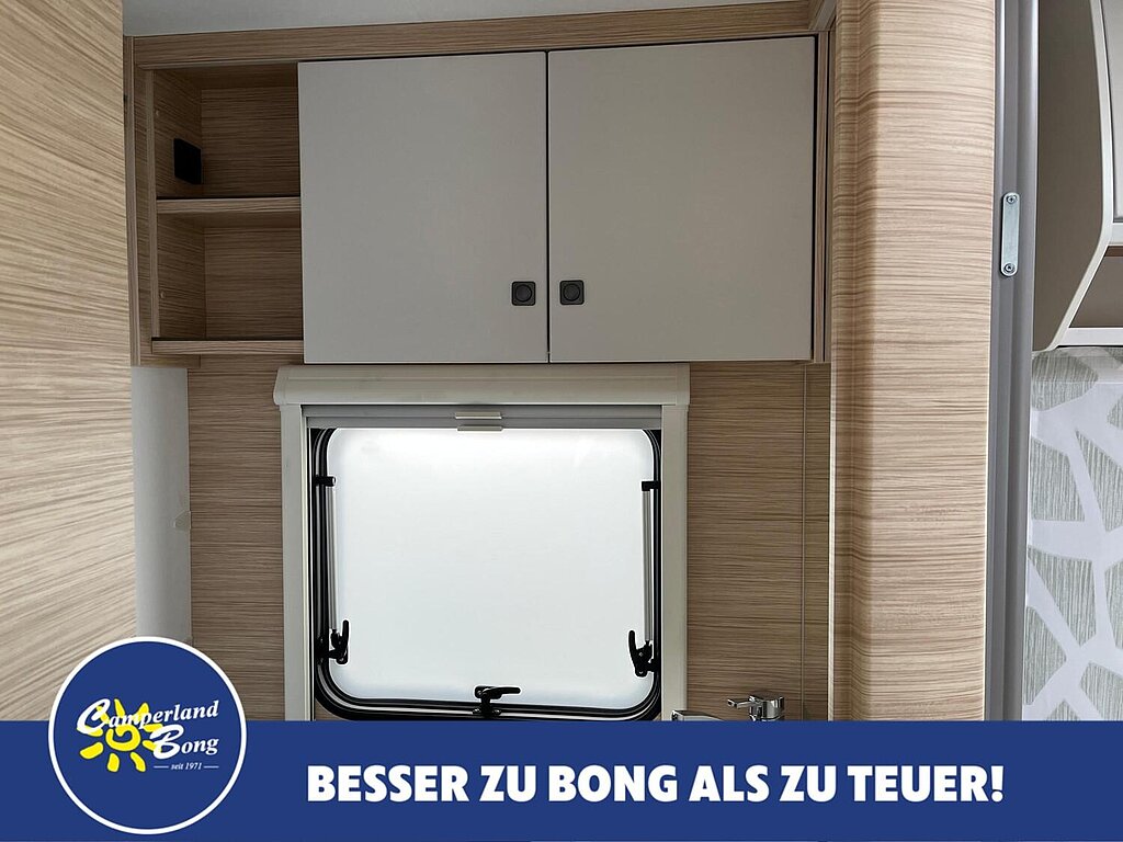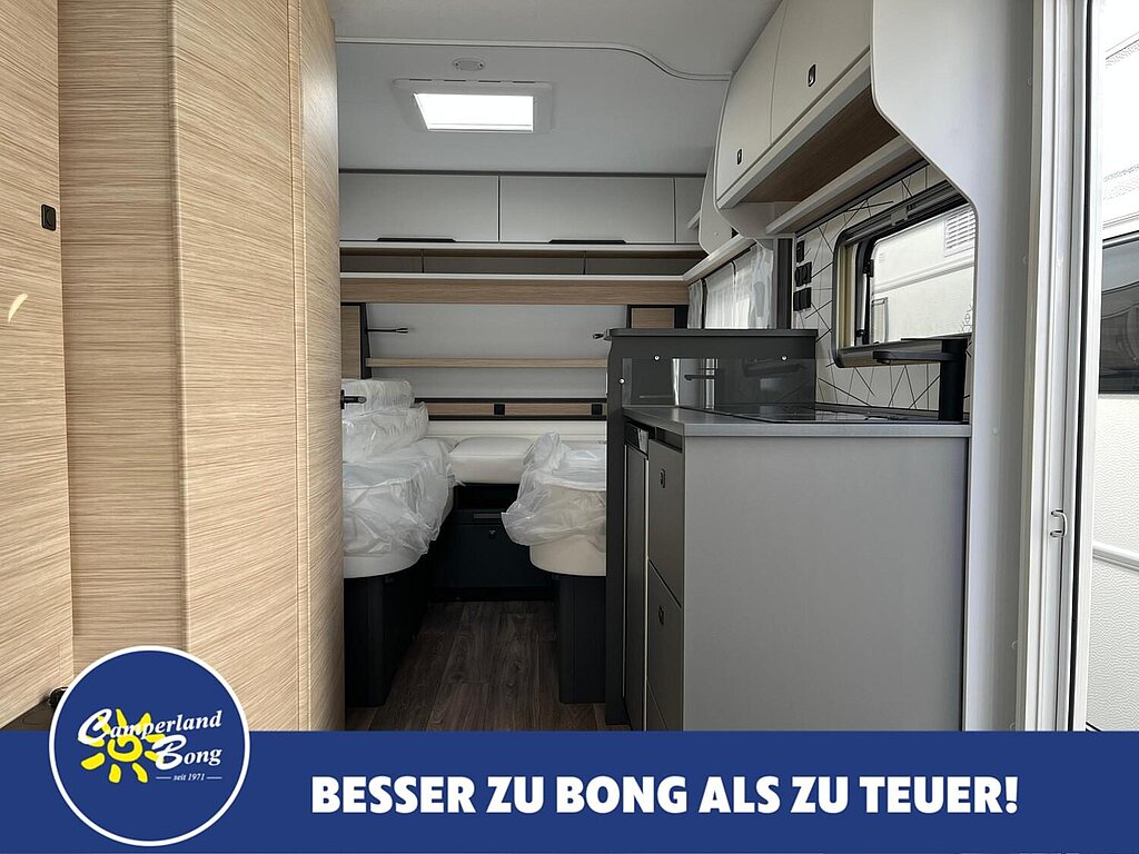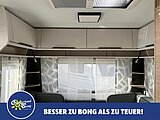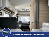 - Eingangstür mit integriertem und isoliertem Einstieg, Abfallsammler und Ablage, im oberen Eingangstürbereich getöntes Fenster und Verdunkelungsplissee
