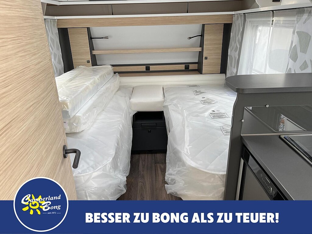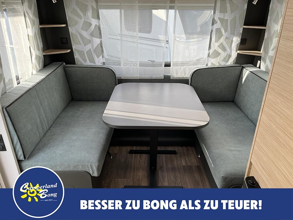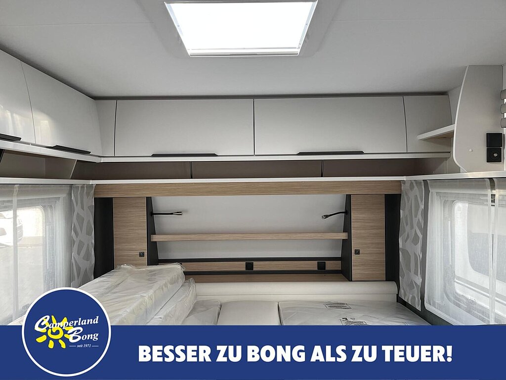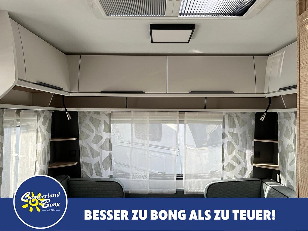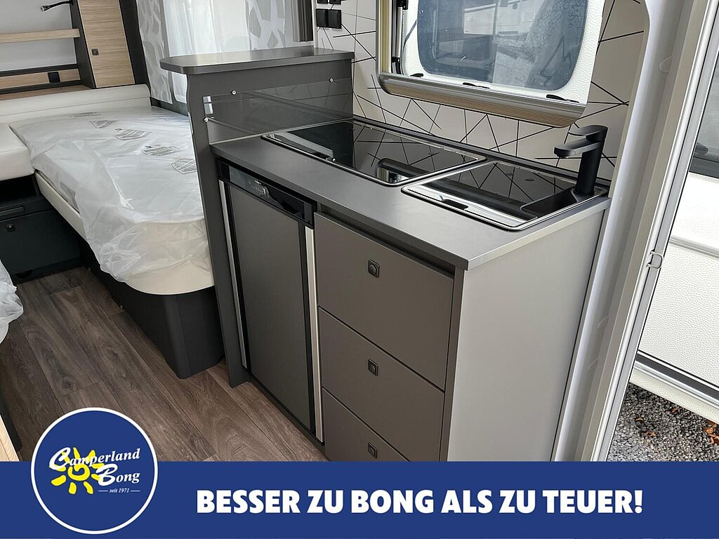 - Eingangstür mit integriertem und isoliertem Einstieg, Abfallsammler und Ablage, im oberen Eingangstürbereich getöntes Fenster und Verdunkelungsplissee