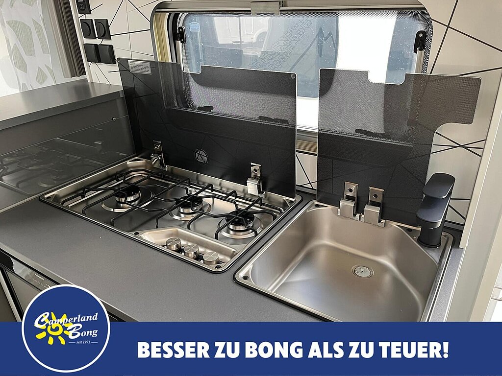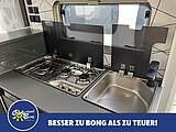 - Kocher (3-flammig) mit Zündsicherung, Zündautomatik, matt emailliertem Kocherrost, Glasabdeckung und separater Spüle mit Glasabdeckung
