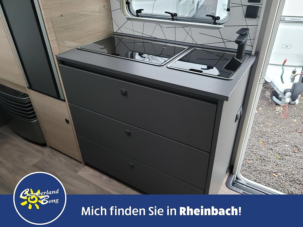 - Kocher (3-flammig) mit Zündsicherung, Zündautomatik, matt emailliertem Kocherrost, Glasabdeckung und separater Spüle mit Glasabdeckung