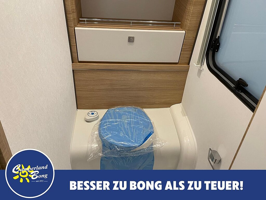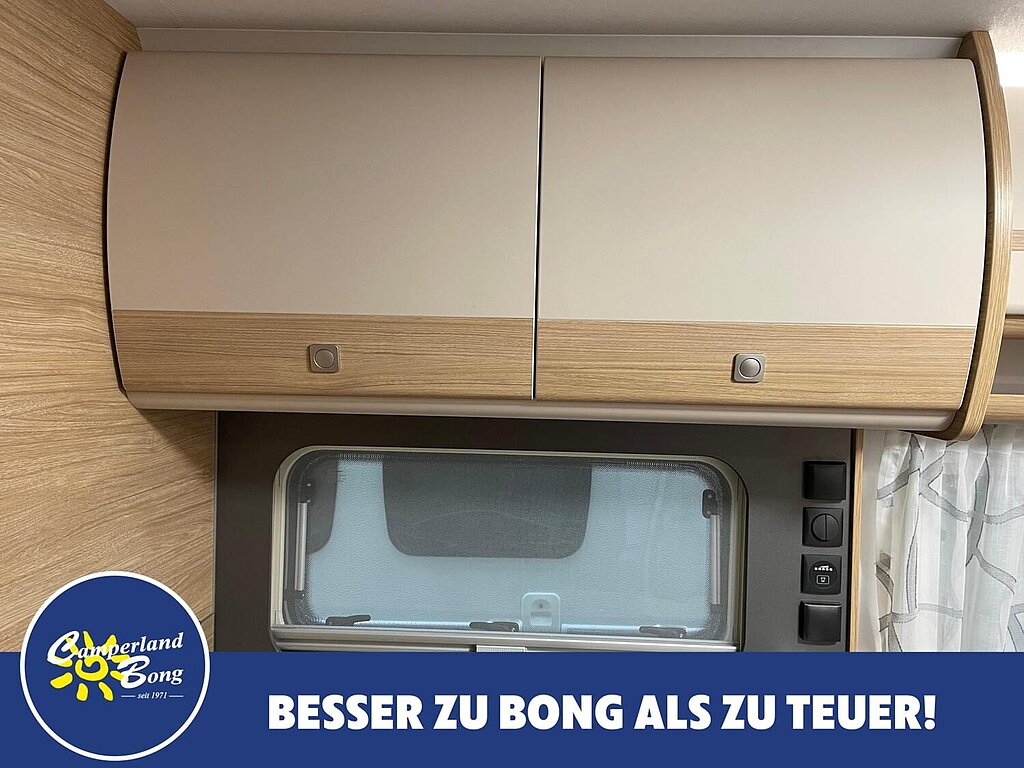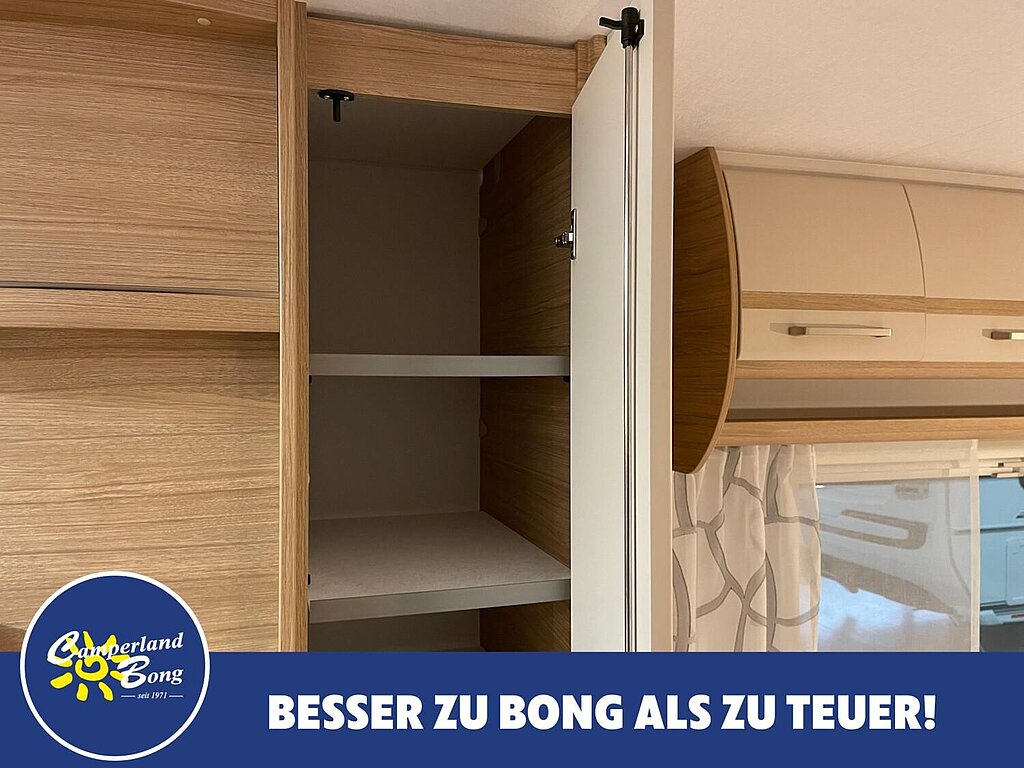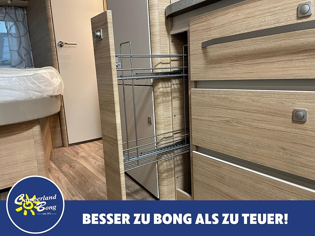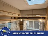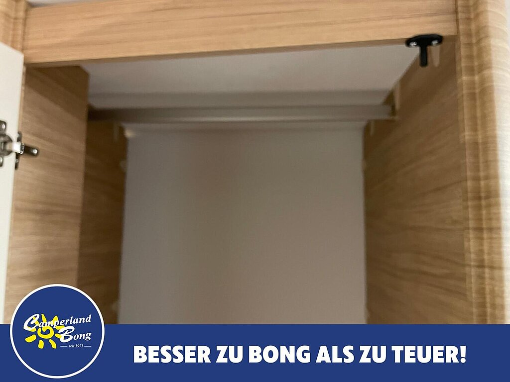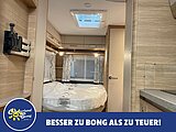 - Eingangstür mit integriertem und isoliertem Einstieg, Abfallsammler und Ablage, im oberen Eingangstürbereich getöntes Fenster und Verdunkelungsplissee