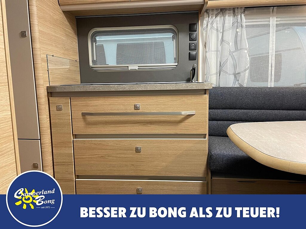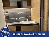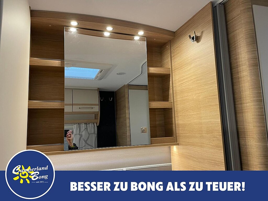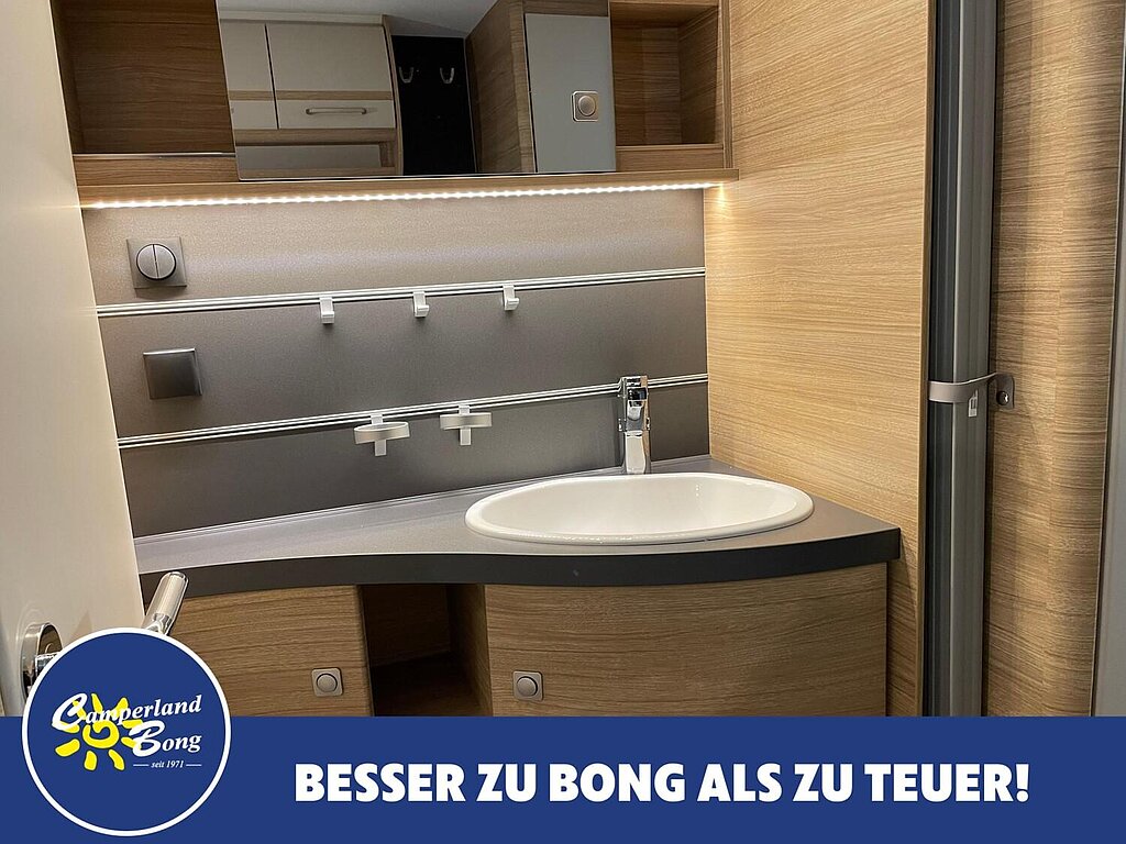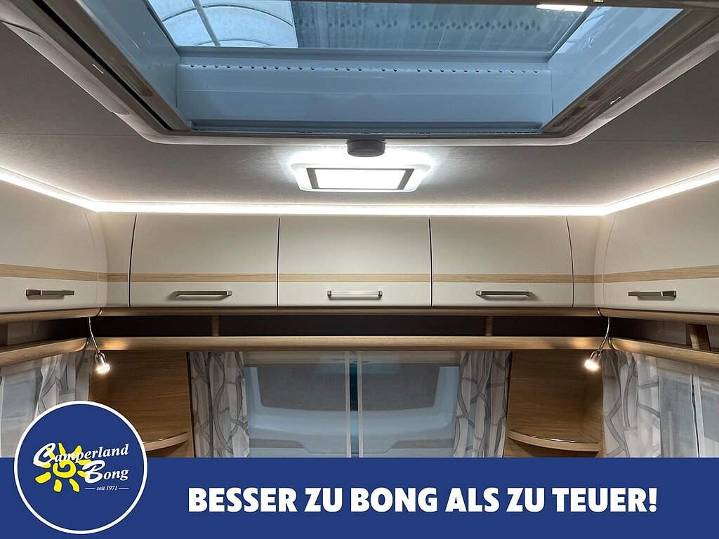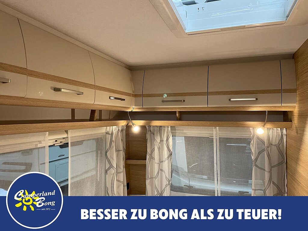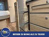 - Eingangstür mit integriertem und isoliertem Einstieg, Abfallsammler und Ablage, im oberen Eingangstürbereich getöntes Fenster und Verdunkelungsplissee