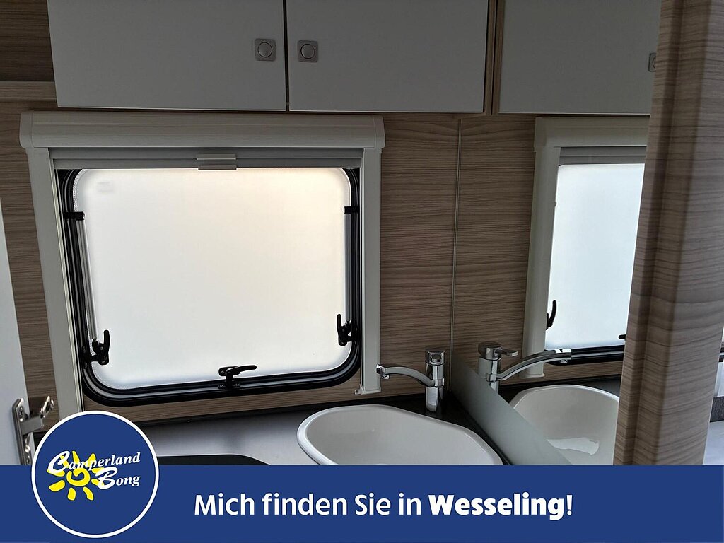 - Ausstellfenster doppelt verglast, getönt, mit Einhandbedienung und kombiniertem Fliegenschutz-/Verdunkelungsrollo