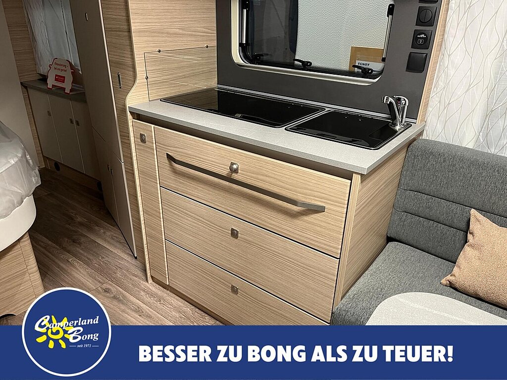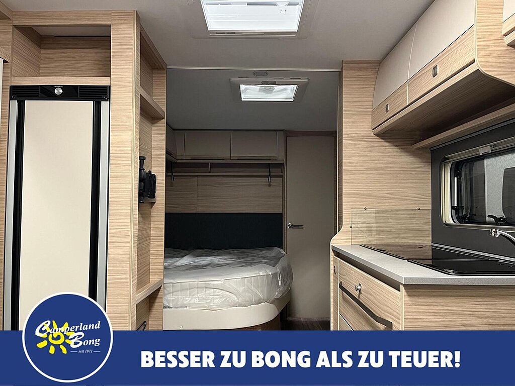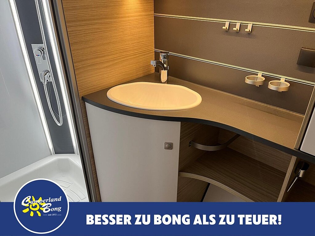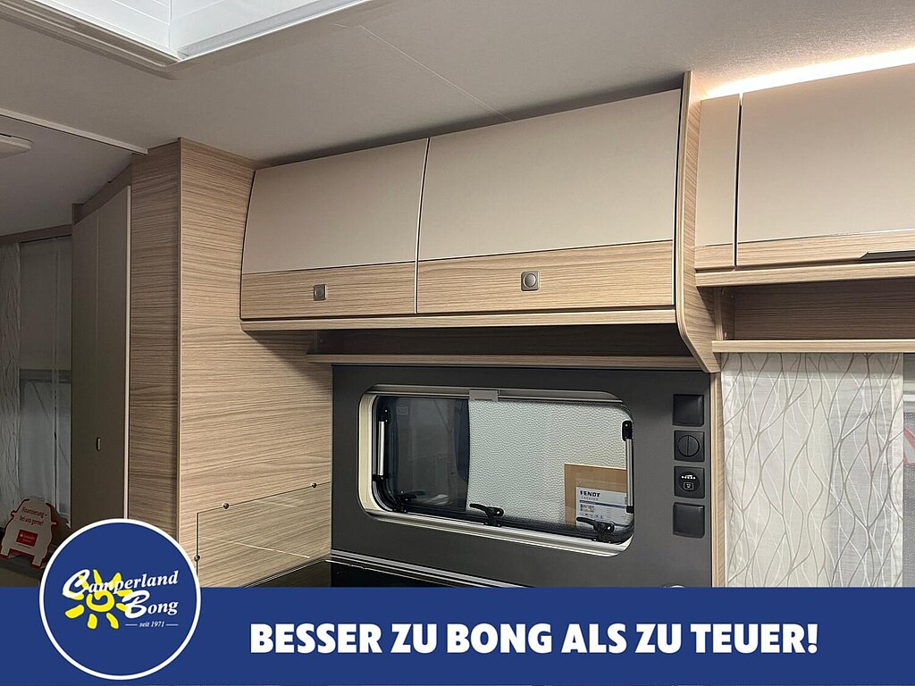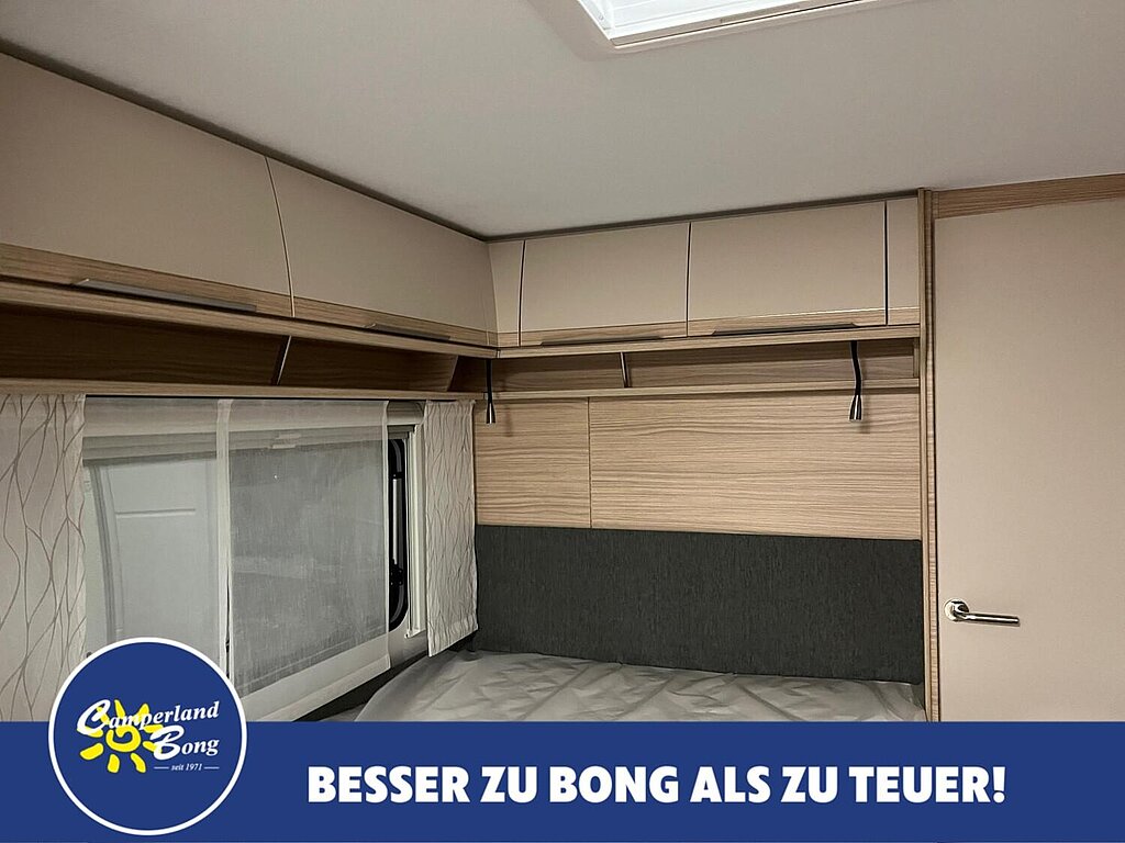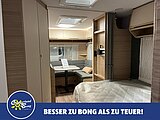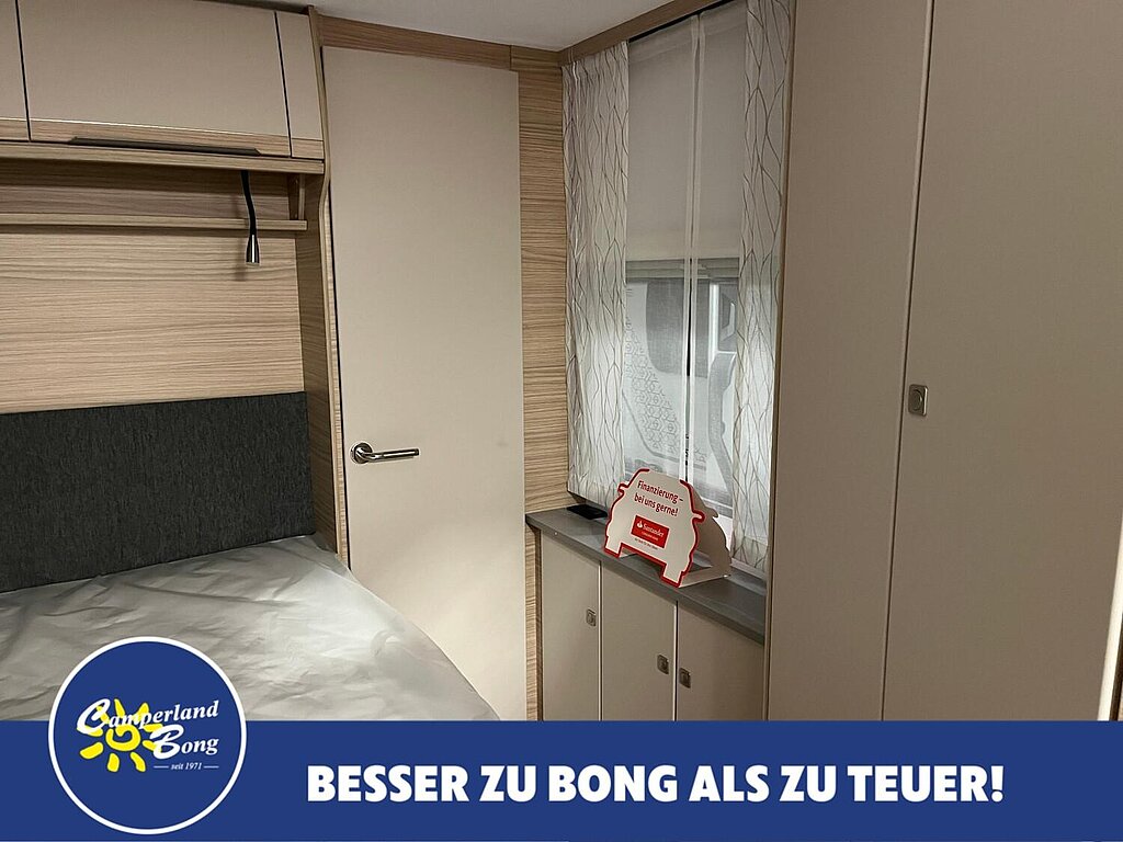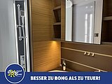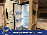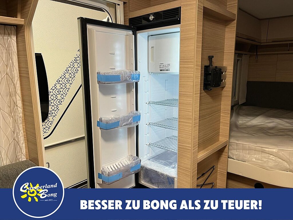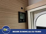 - Eingangstür mit integriertem und isoliertem Einstieg, Abfallsammler und Ablage, im oberen Eingangstürbereich getöntes Fenster und Verdunkelungsplissee