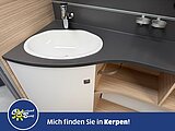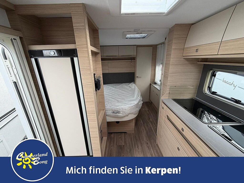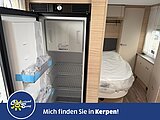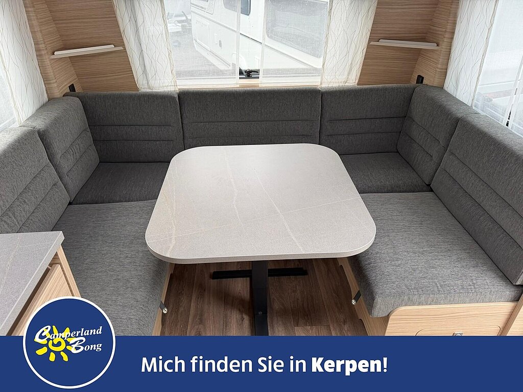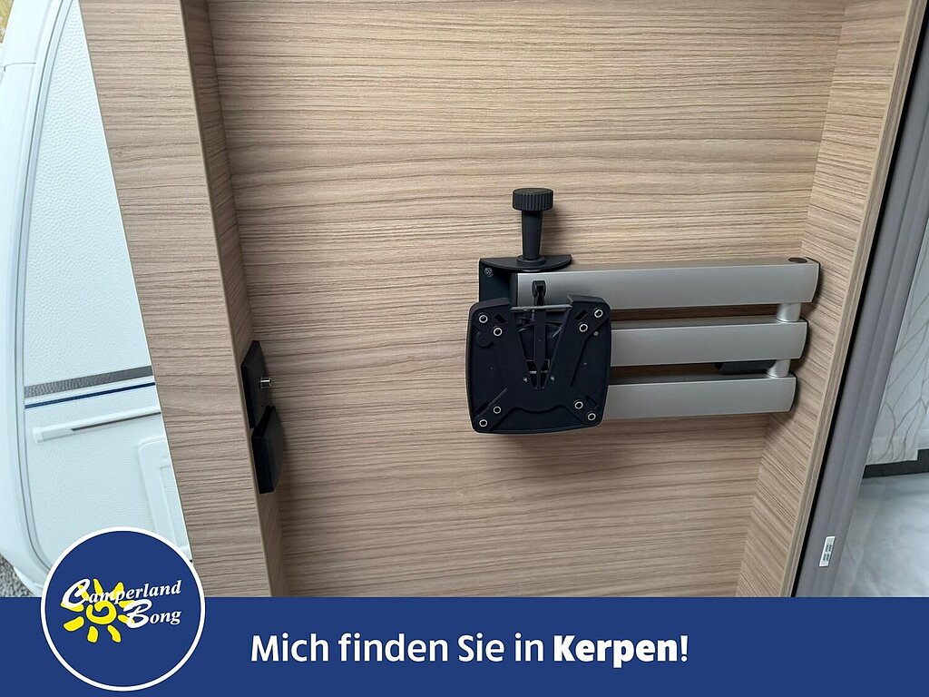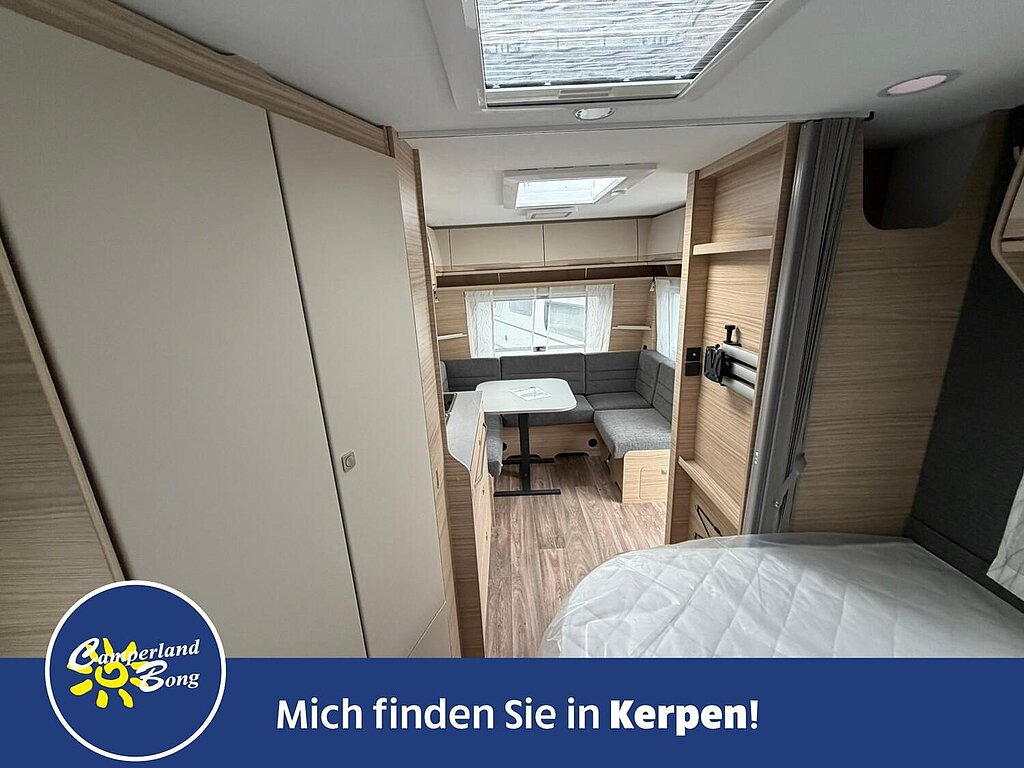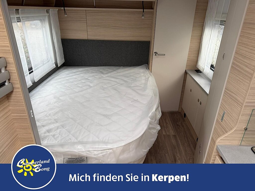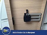 - Eingangstür mit integriertem und isoliertem Einstieg, Abfallsammler und Ablage, im oberen Eingangstürbereich getöntes Fenster und Verdunkelungsplissee