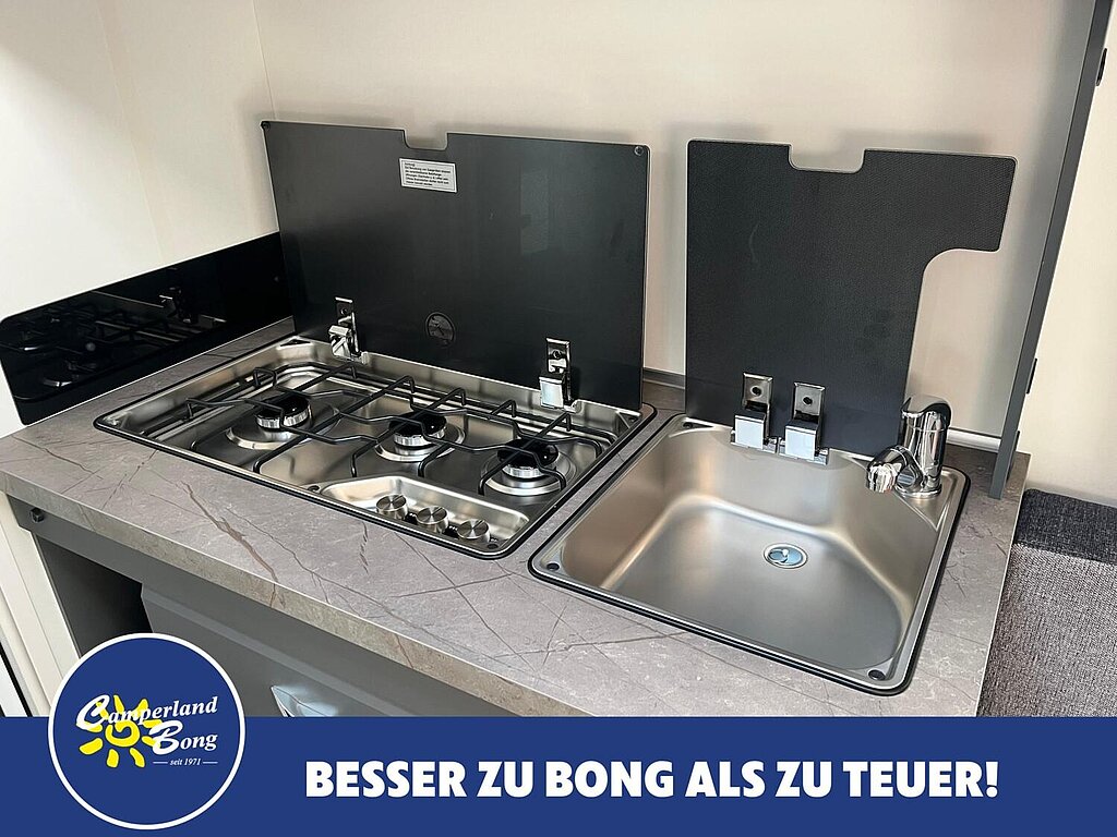 - Kocher und Spüle aus Edelstahl, mit 3-Flammkocher, elektrischer Zündung und zweiteiliger Glasabdeckung