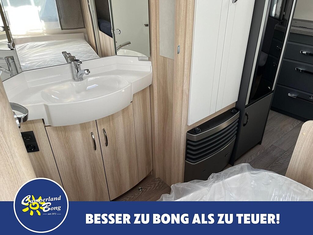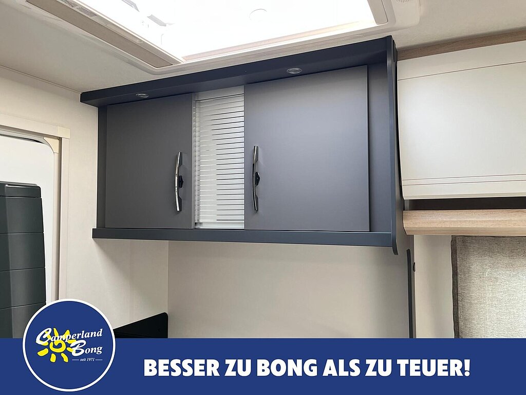 - Winterbelüftung für Sitzgruppe, Stauschränke und Betten, Eingangstür einteilig, extrabreit mit Dreifachverriegelung