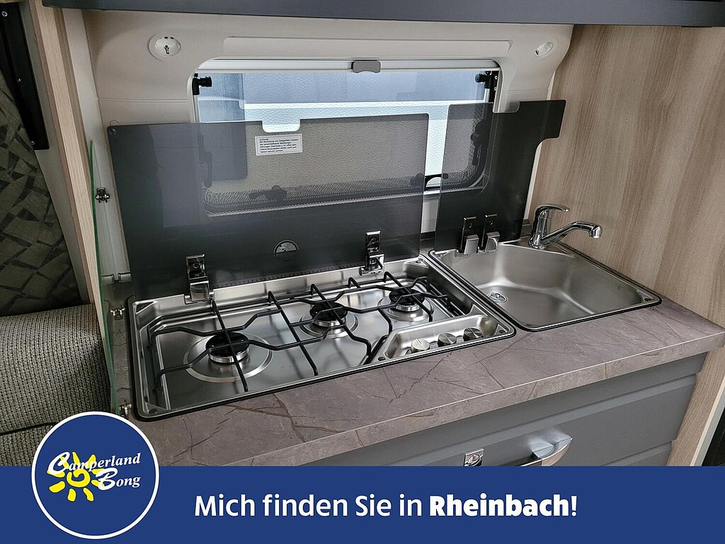 - Kocher und Spüle aus Edelstahl, mit 3-Flammkocher, elektrischer Zündung und zweiteiliger