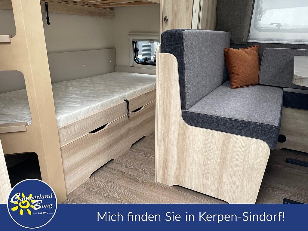 - Winterbelüftung für Sitzgruppe, Stauschränke und Betten, Eingangstür einteilig, extrabreit mit Dreifachverriegelung