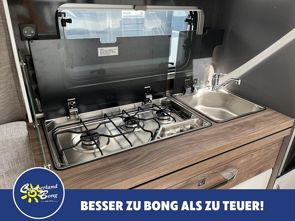 - Kocher und Spüle aus Edelstahl, mit 3-Flammkocher, elektrischer Zündung und zweiteiliger Glasabdeckung