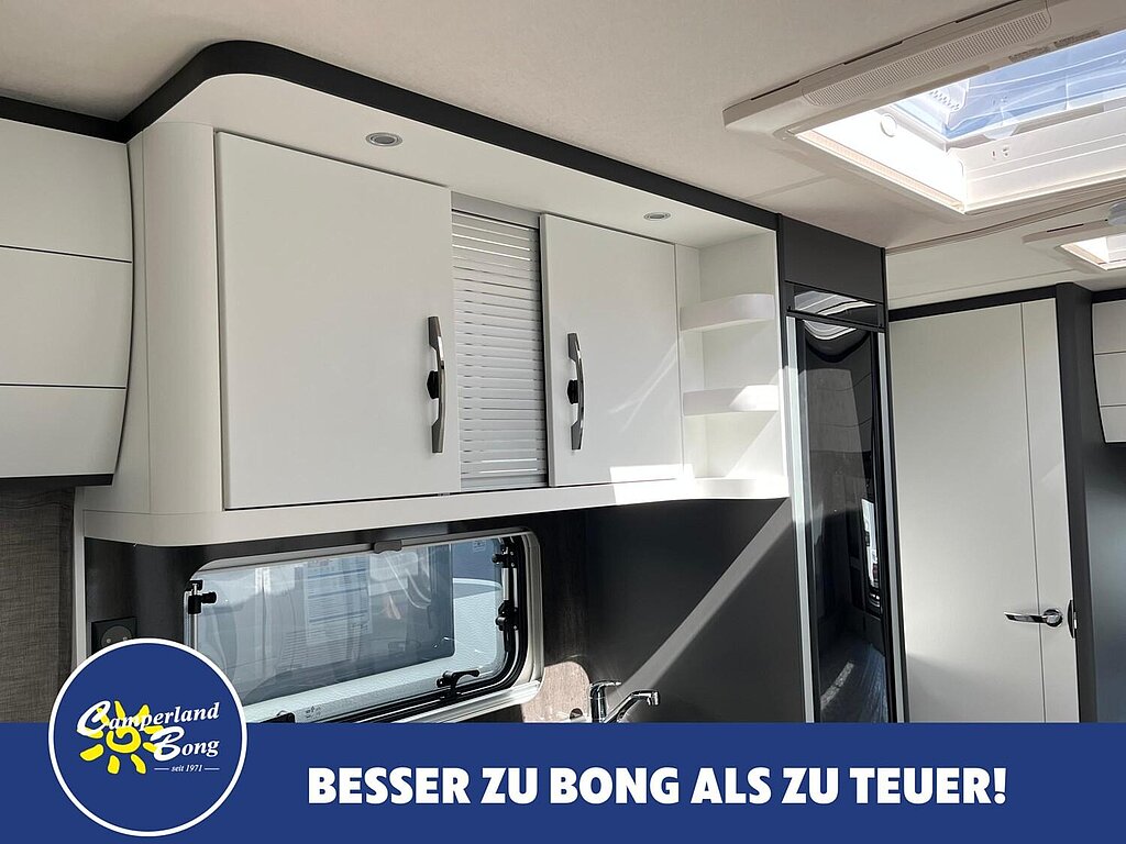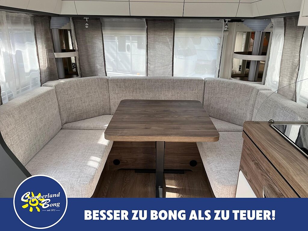- Winterbelüftung für Sitzgruppe, Stauschränke und Betten, Eingangstür einteilig, extrabreit mit Dreifachverriegelung, Fenster