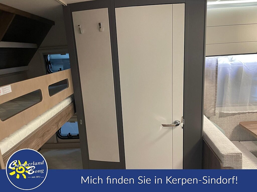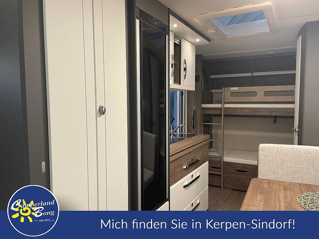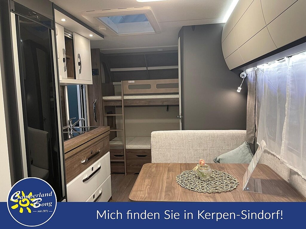 - Winterbelüftung für Sitzgruppe, Stauschränke und Betten, Eingangstür einteilig, extrabreit mit Dreifachverriegelung, Fenster