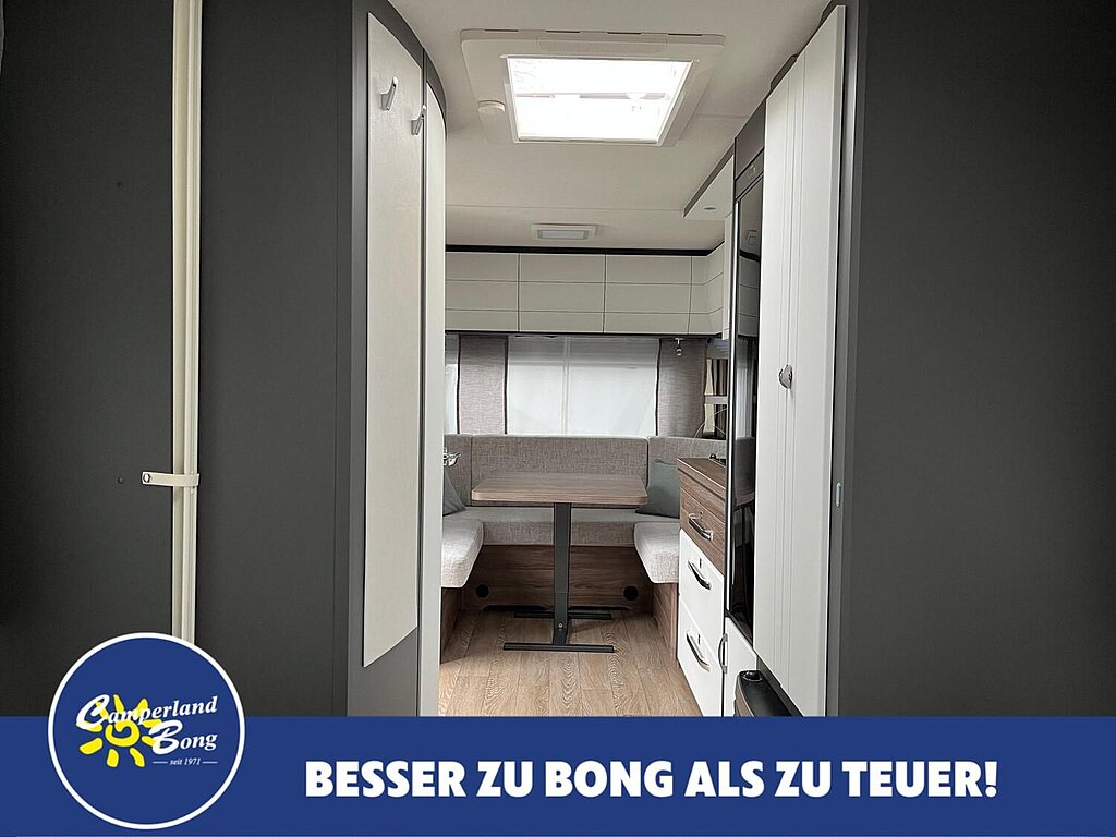 - Winterbelüftung für Sitzgruppe, Stauschränke und Betten, Eingangstür einteilig, extrabreit mit Dreifachverriegelung, Fenster