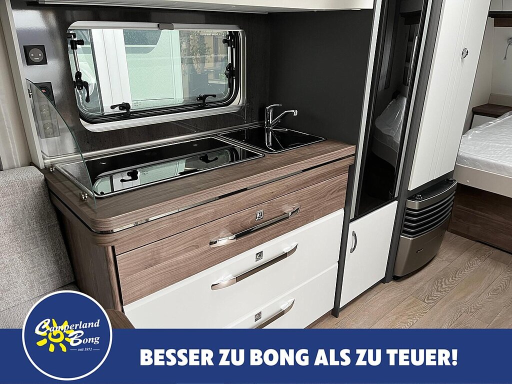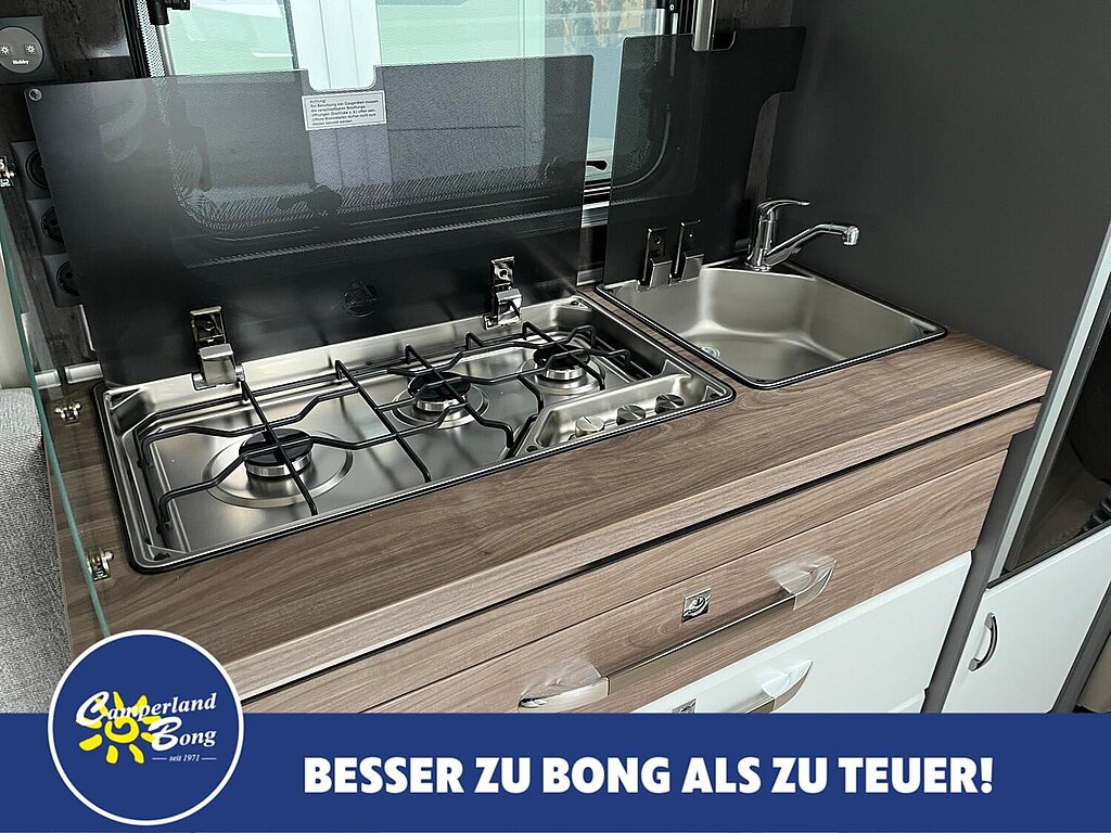 - Einstiegsgriff, Einstiegstritt, Integrierte Vorzeltleiste, Regenmarkisenleiste mit Wasserablauf, Bug / Heck, Radkästen, wärmegedämmt