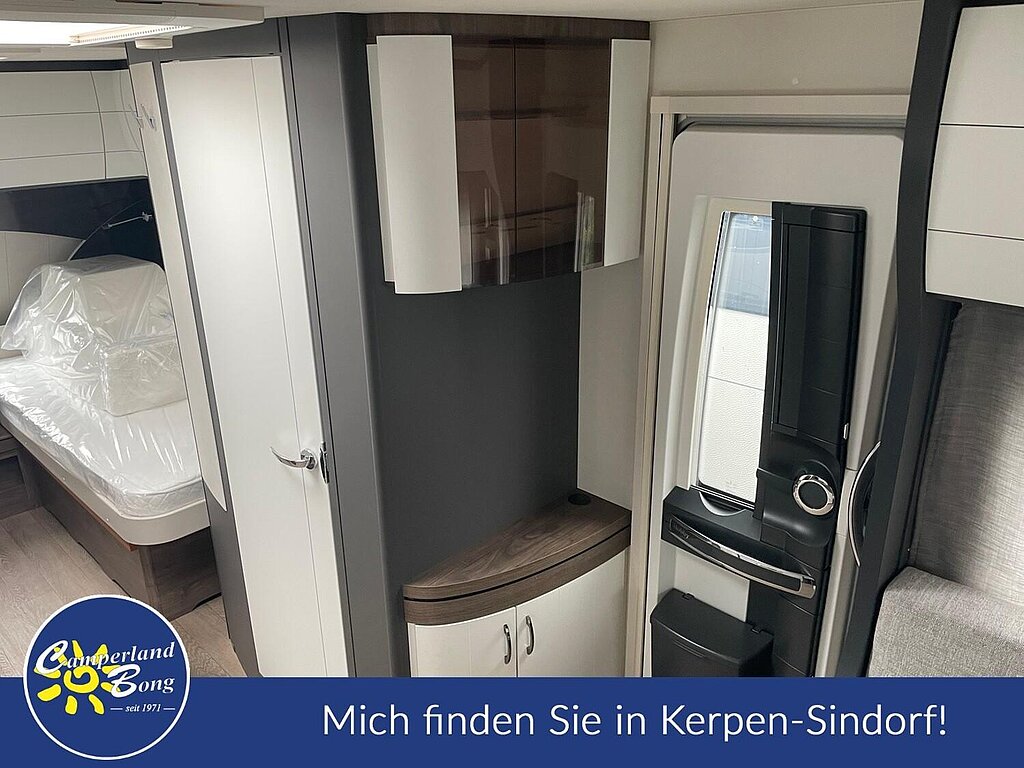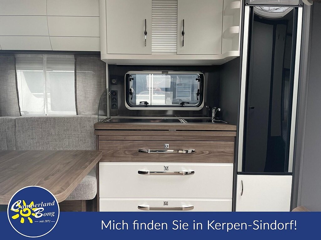 - Winterbelüftung für Sitzgruppe, Stauschränke und Betten, Eingangstür einteilig, extrabreit mit Dreifachverriegelung, Fenster