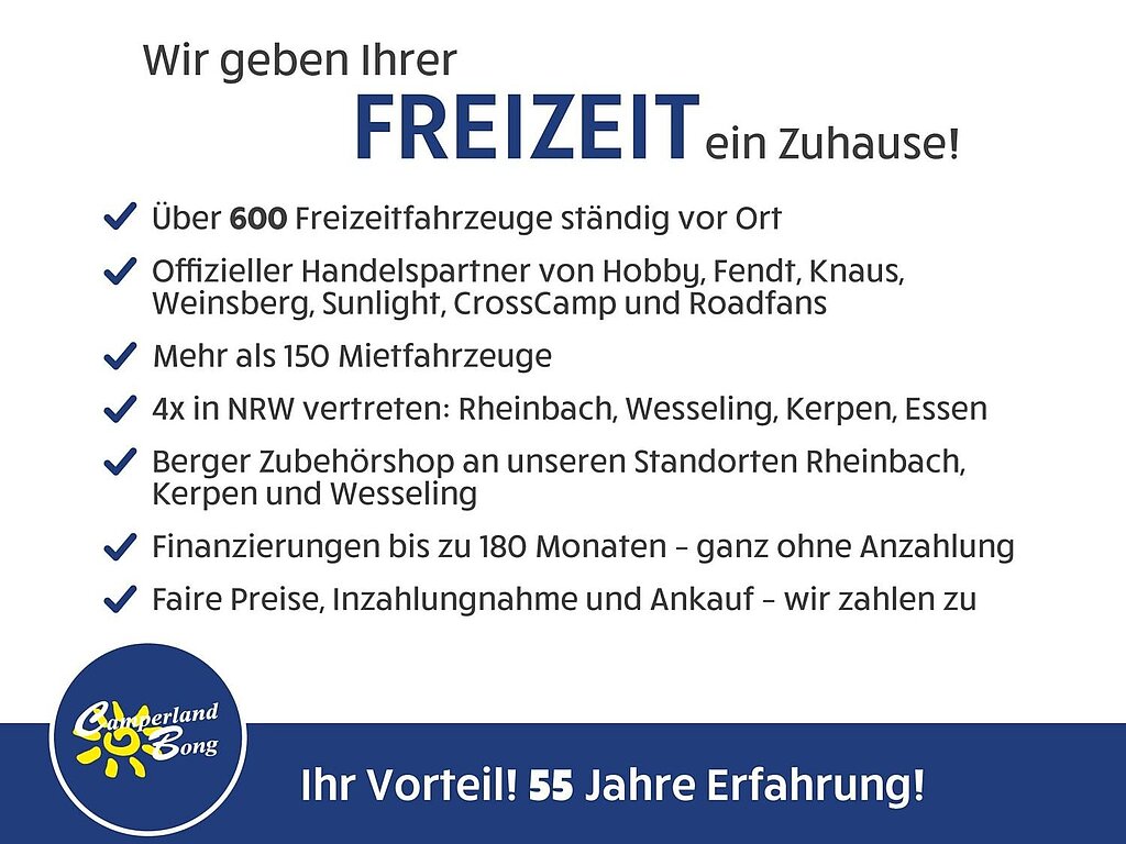- Winterbelüftung für Sitzgruppe, Stauschränke und Betten, Eingangstür einteilig, extrabreit mit Dreifachverriegelung, Fenster, Abfalleimer
