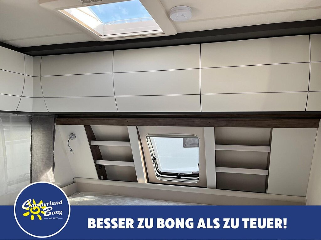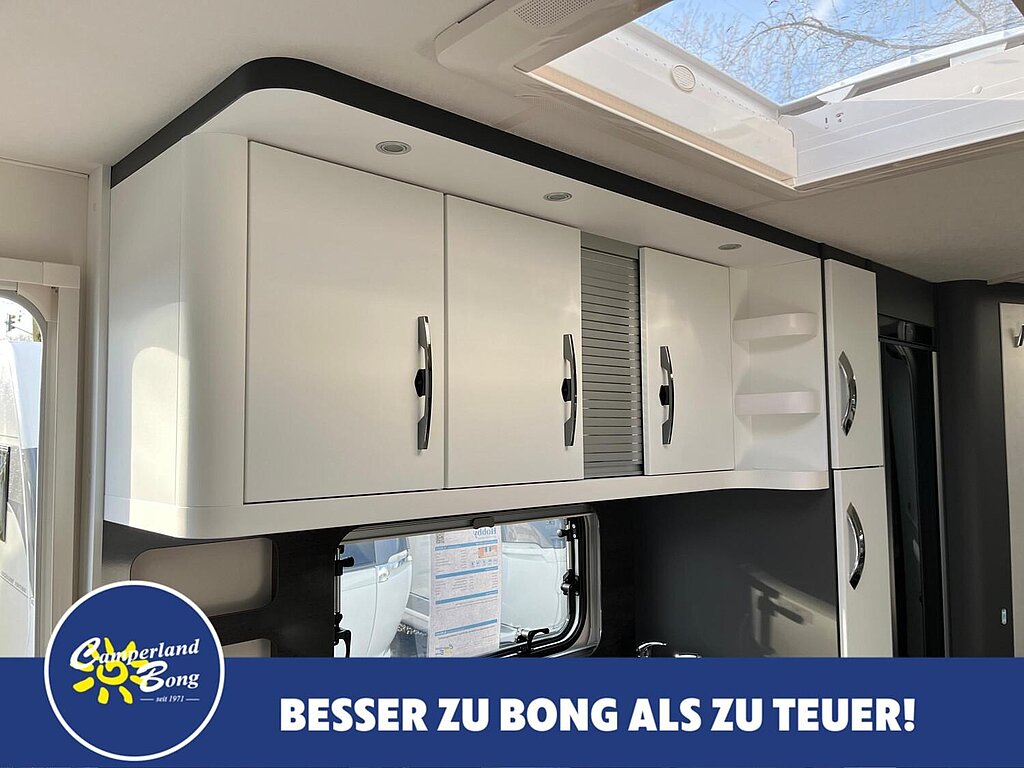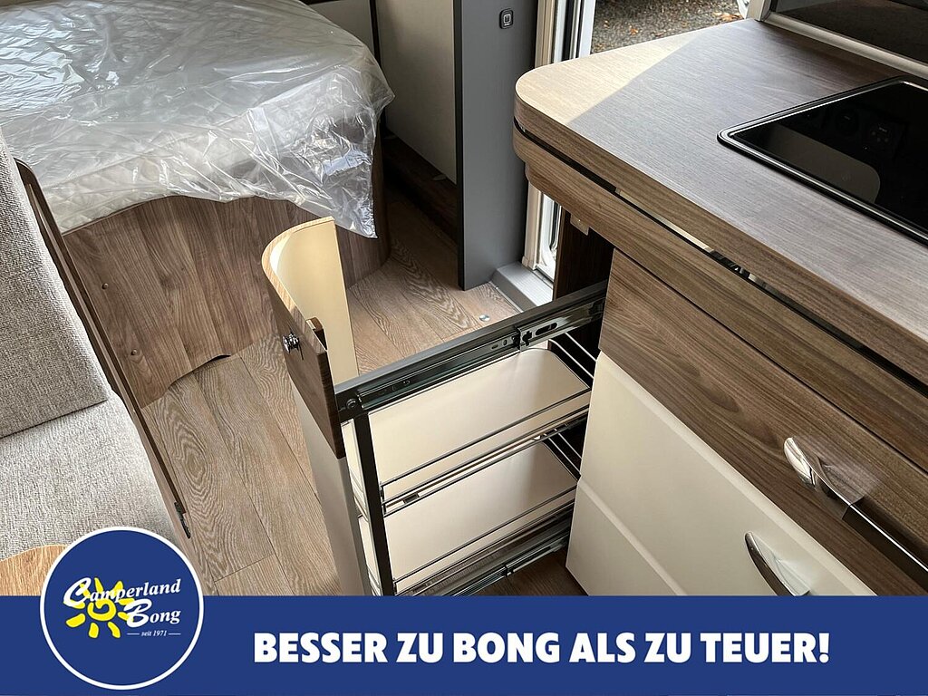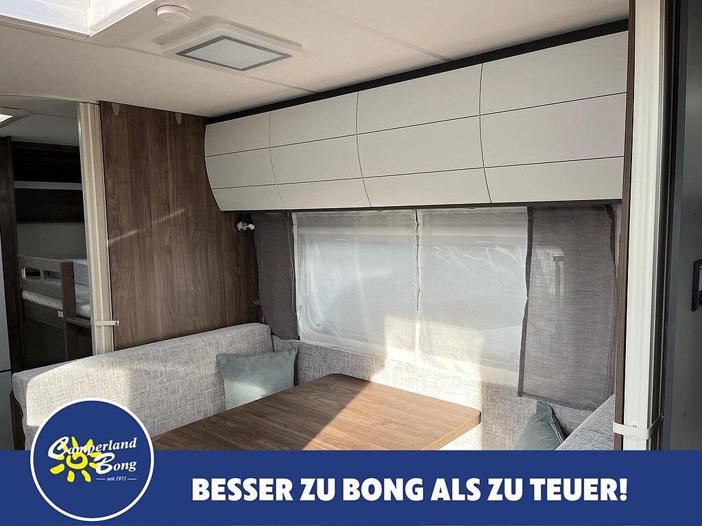 - Winterbelüftung für Sitzgruppe, Stauschränke und Betten, Eingangstür einteilig, extrabreit mit Dreifachverriegelung, Fenster, Abfalleimer