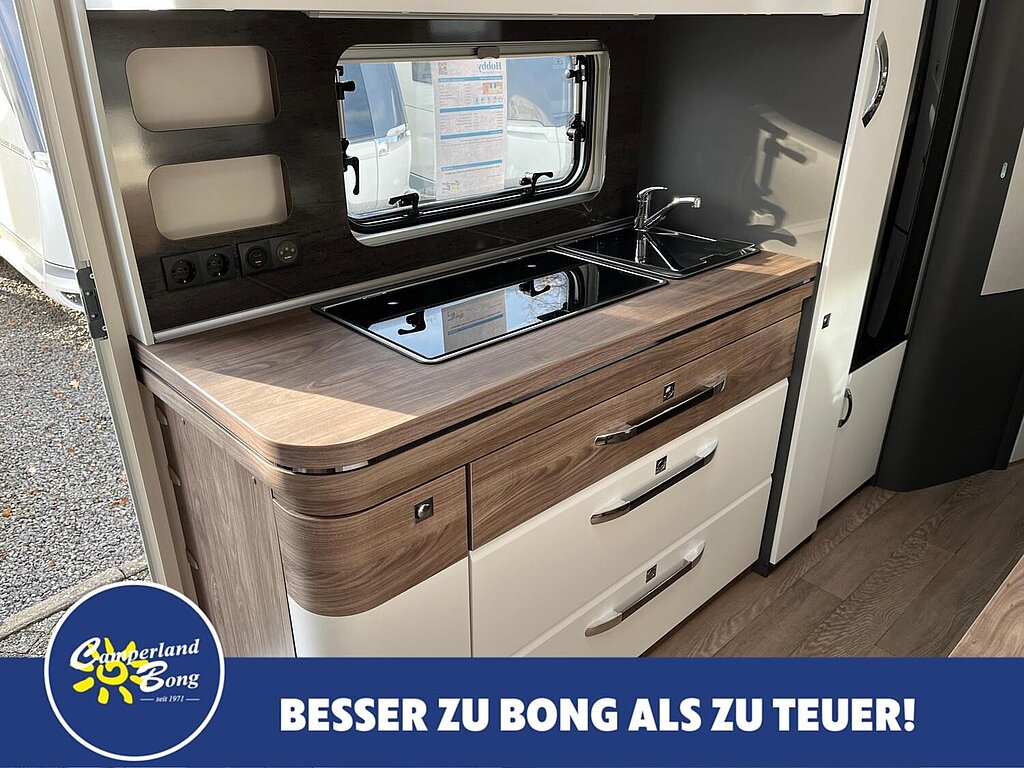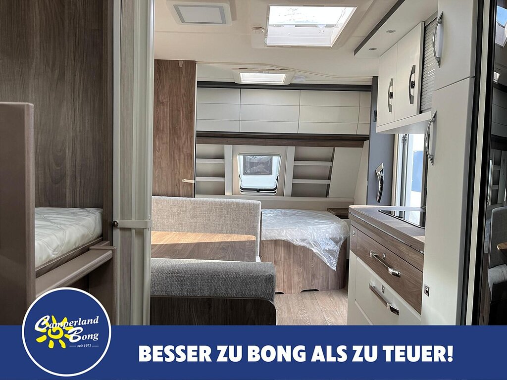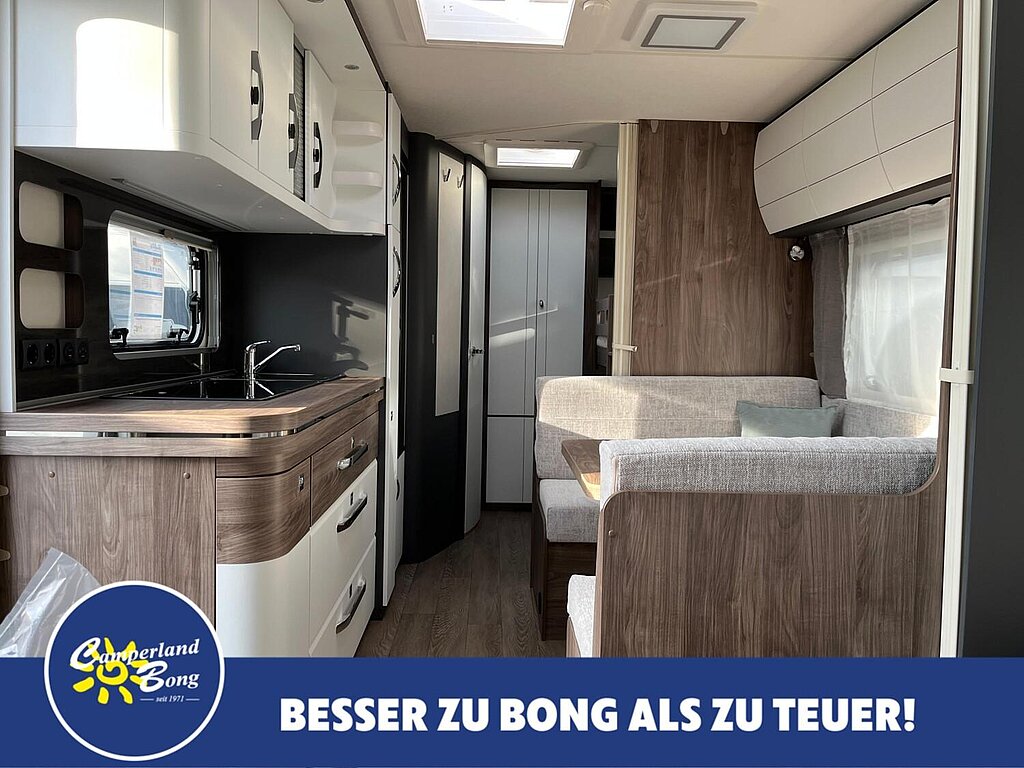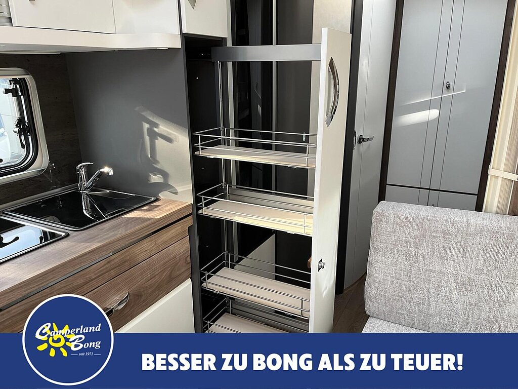 - Winterbelüftung für Sitzgruppe, Stauschränke und Betten, Eingangstür einteilig, extrabreit mit Dreifachverriegelung, Fenster, Abfalleimer