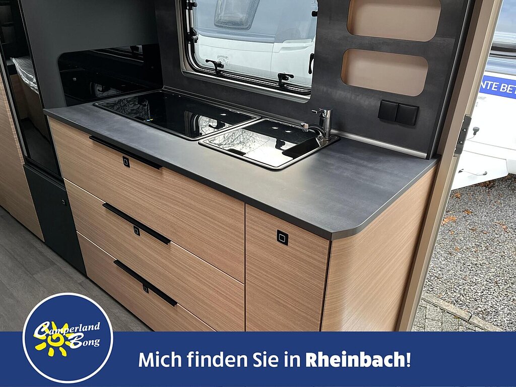 - Einstiegstritt, Integrierte Vorzeltleiste, Regenmarkisenleiste mit Wasserablauf, Bug / Heck