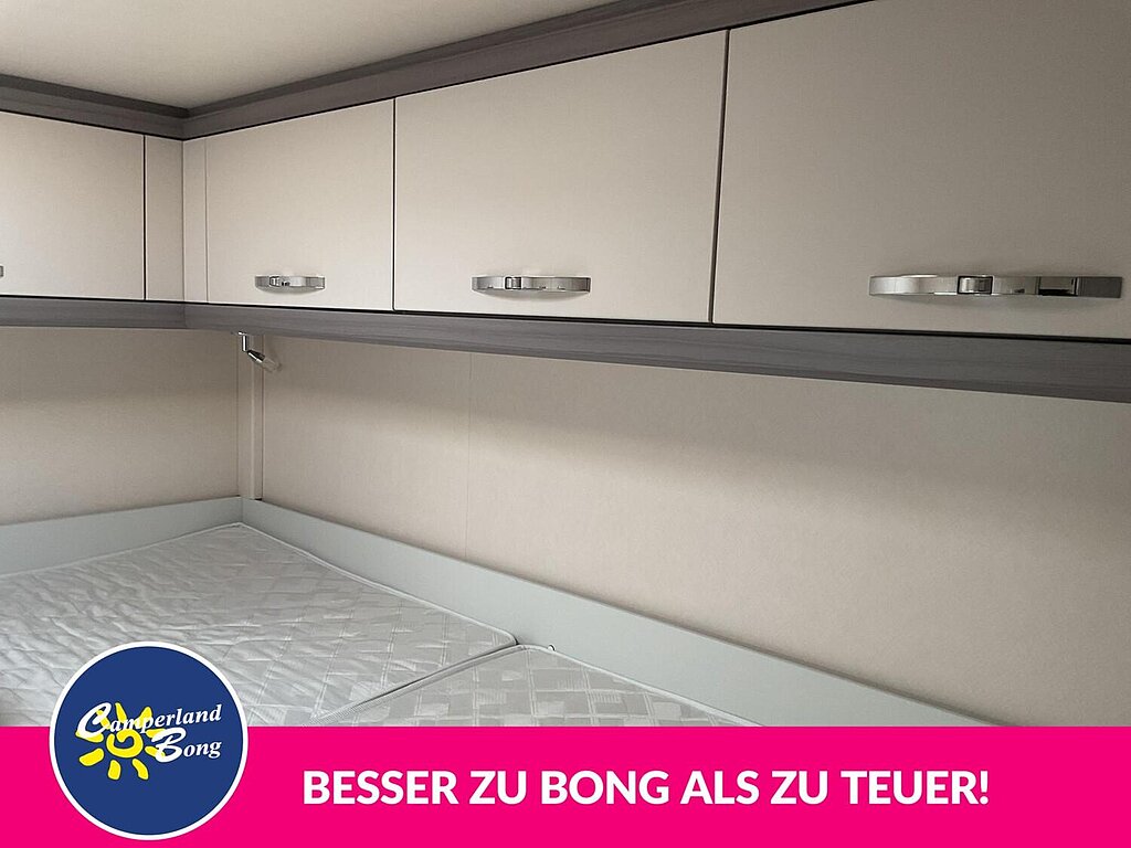 - Umlaufende Hängeschränke über Bett, Wäschefach unter Bett