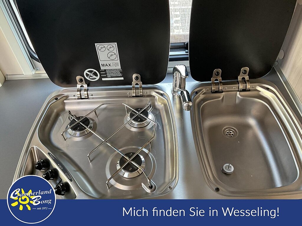 - Absorbertechnik, Kocher aus Edelstahl mit 3-Flammen, elektrischer Zündung und Glasabdeckung