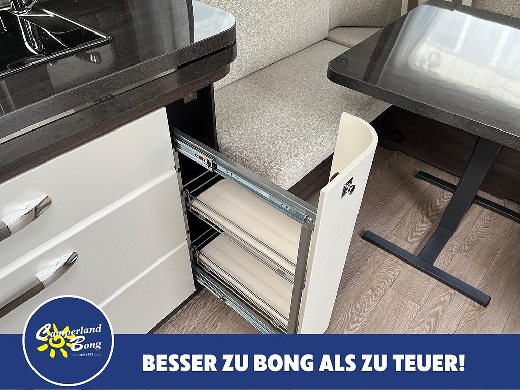 - Winterbelüftung für Sitzgruppe, Stauschränke und Betten, Eingangstür einteilig, extrabreit mit Dreifachverriegelung, Fenster