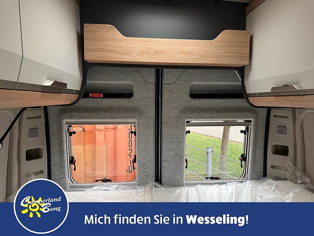 - Vorgehängte Ausstellfenster an beiden Hecktüren inkl. Insektenschutz und Verdunklung