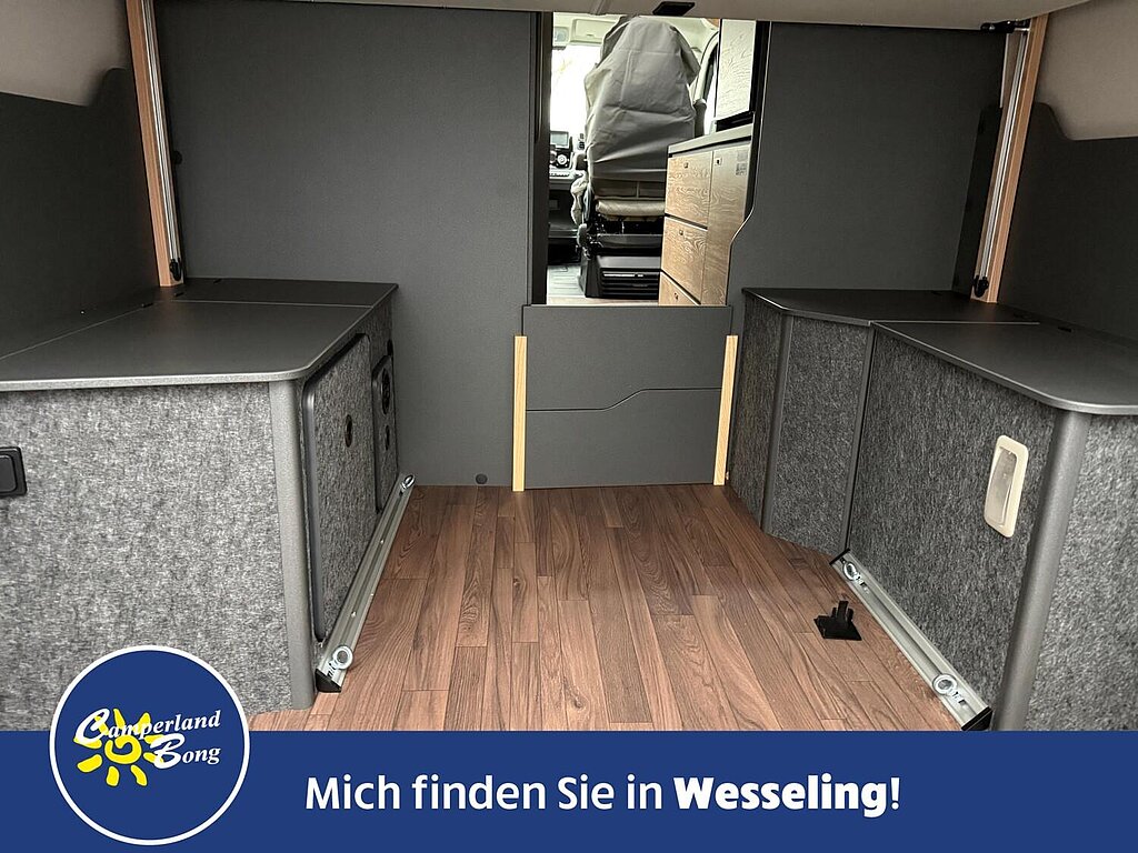 - Vorgehängte Ausstellfenster an beiden Hecktüren inkl. Insektenschutz und Verdunklung
