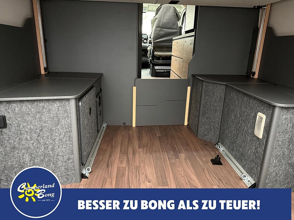 - Vorgehängte Ausstellfenster an beiden Hecktüren inkl. Insektenschutz und Verdunklung
