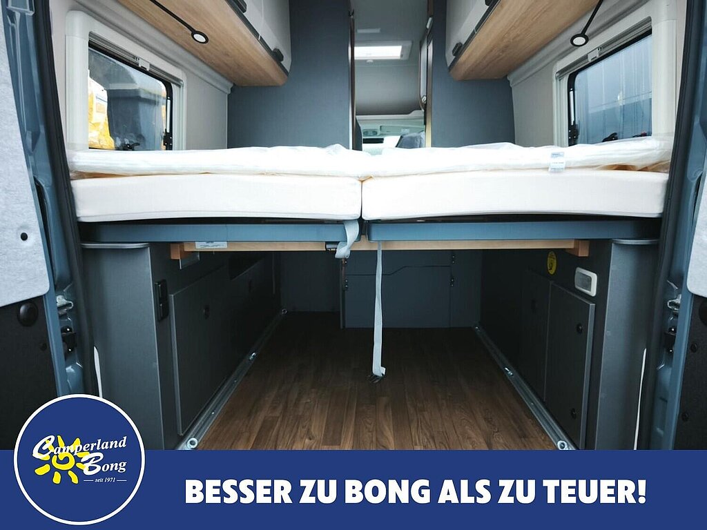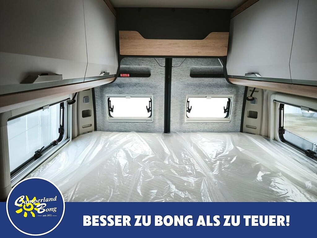 - Vorgehängte Ausstellfenster an beiden Hecktüren inkl. Insektenschutz und Verdunklung