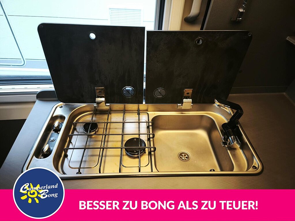 - Funline-Paket (Front- und Seitenscheibenverdunklung, Isolierhaube Abwassertank, beheizbar, TRUMA CP-Plus, digitales Heizungsbedienpanel, Einstiegstufe elektrisch (Breite: 70 cm), Markise 375 x 250 cm, anthrazit, Lichtsteuerung)