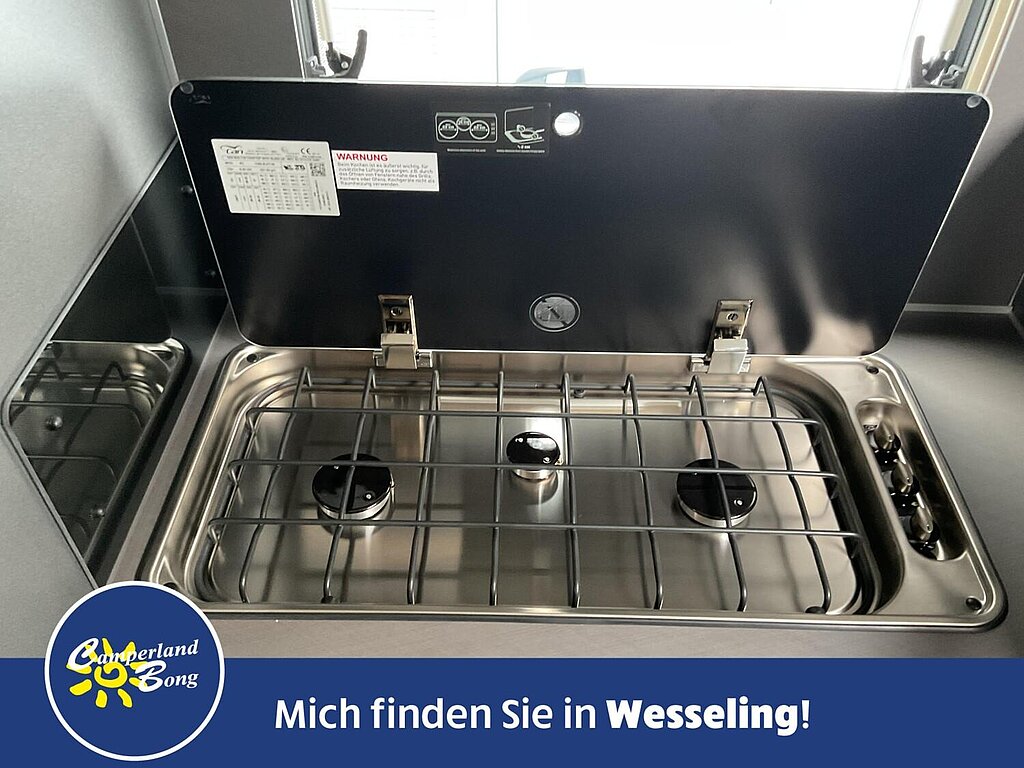 - Einfacher Zugang zu Gaskasten über Servicetür in der Seitenwand, Anordnung der Gasflaschen längs (grundrissabhängig)