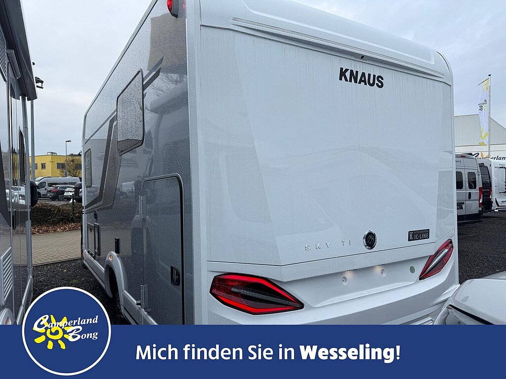 - SKY TI Paket (Dachhaube (Hebe-Kipp) 70 x 50 cm klar, mit Beleuchtung, Insektenschutz und Verdunklung (Bug), Front- und Seitenscheibenverdunklung, Hochwertige Passform-Sitzbezüge für Fahrerhaussitze im KNAUS Wohnwelt-Design, Stoffblenden mit Taschen im Bettbereich, TRUMA CP-Plus, digitales Heizungsbedienpanel, Ambientebeleuchtung und Küchenrückwandverkleidung)
