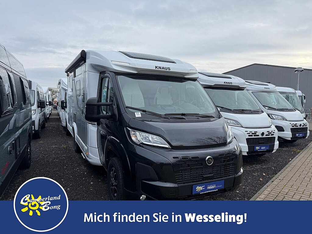 - Styling-Paket I (Lenkrad und Schaltknauf in Techno-Lederausführung, Instrumententafel im Techno-Design (Alu), Nebelscheinwerfer mit Abbiegelicht, 16" Bereifung, Leichtmetallfelgen für Serienbereifung, KNAUS Embleme im Bug und im Heck, schwarz/chrom, Frontstoßfänger in Wagenfarbe lackiert, Spoilerlippen (skid-plate), Chassis in Lackierung: Lanzarote Grey)