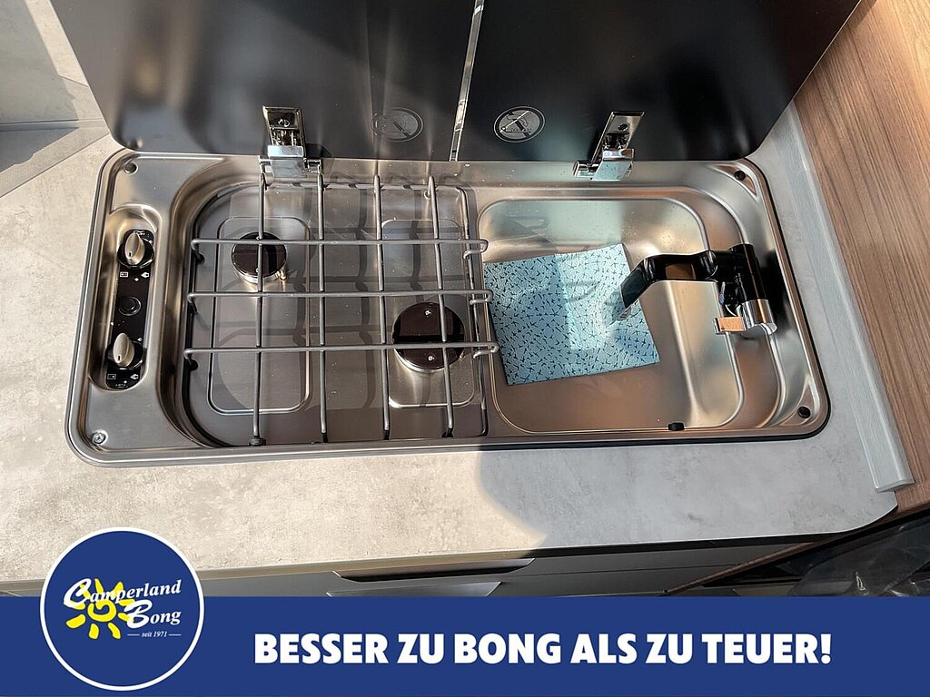 - 2-Flammen-Kocher mit Glasabdeckung, Spülbecken aus Edelstahl, versenkt (Abhängigkeit: ABH13917)
