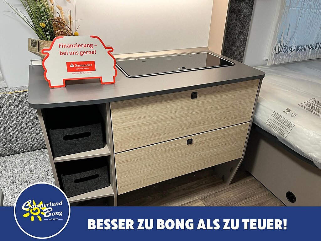 Perfekt für alle, die beim Campen weniger Ballast und mehr Abenteuer suchen. Das zulässige Gesamtgewicht von 1.000 kg ist optimal für kleinere Zugfahrzeuge oder E-Autos geeignet.