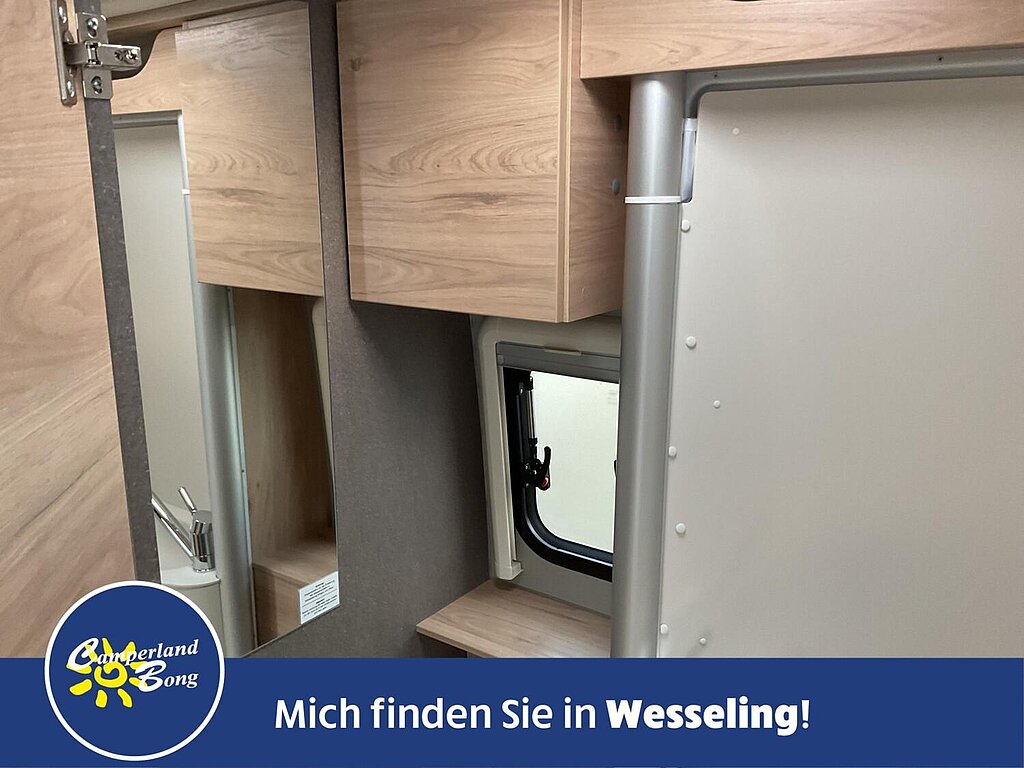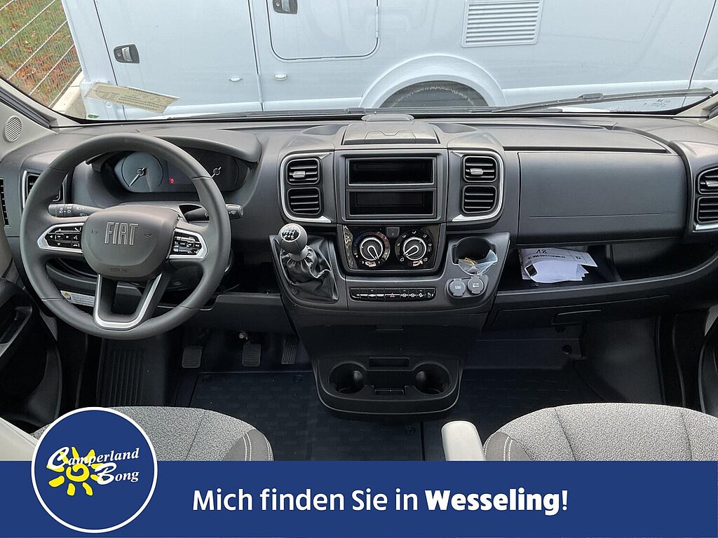 - Active Paket (Fiat) (Alufelge 16 Zoll (Manuelles Getriebe: Felgen Schwarz, Automatik/ Maxi: Felgen Bicolor), Lenkrad und Schaltknauf in Lederausführung, Techno Trim, Tablet Holder, DAB Antenne im Spiegel, Lautsprecher, Lenkradbedienung Radio, Falt-Sichtschutz in Fahrerhaus: Frontscheibe, Falt-Sichtschutz in Fahrerhaus: Seitenscheiben, Fliegengittertür, Elektrische Einstiegsstufe, Fenster im Bad, Dachhaube Midi-Heki 70 x 50 cm über der Sitzgruppe mit Fliegenschutz und Verdunklungsrollo, Drehplatte für Tischerweiterung, Kabelvorbereitung für Rückfahrkamera, Vorbereitung Solarmodule, TV-Vorbereitung 12 V und TV-Steckdose, SAT-Anschluss, LED-Lichtröhre in der Küche, 230-V-Steckdose im Oberschrank Bug links (Sitzgruppe), 12-V-Steckdose im Heckbereich links unten, Zusätzliche Doppel-USB-Steckdose im Bug links)
