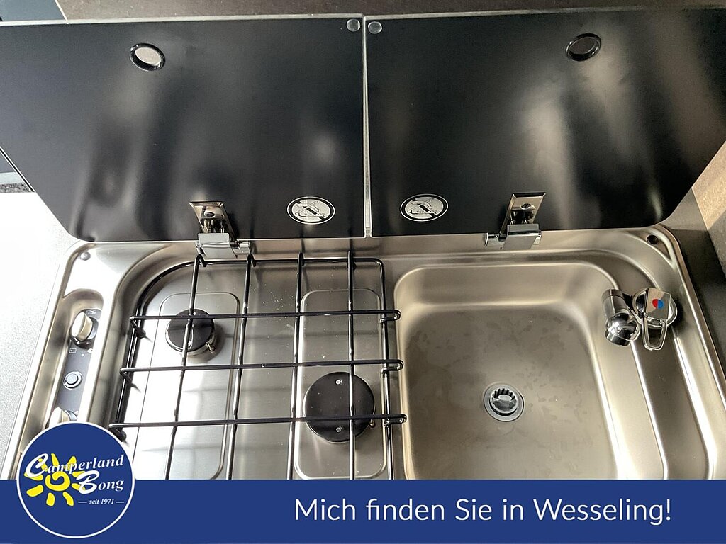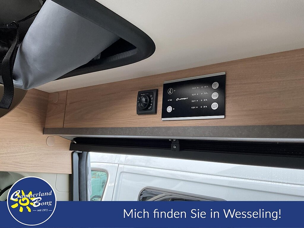 - Aufstelldach schwarz, vorne komplett zu öffnen inkl. elektrischem Schließassistenten, Fliegengitter, Schwanenhalsleuchte und USB-Steckdose, mit hochwertiger Matratze