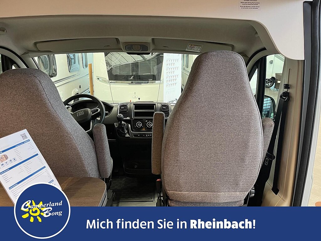 - Fahrer- und Beifahrersitz in Wohnraumstoff mit Doppelarmlehnen (Captain Chair)