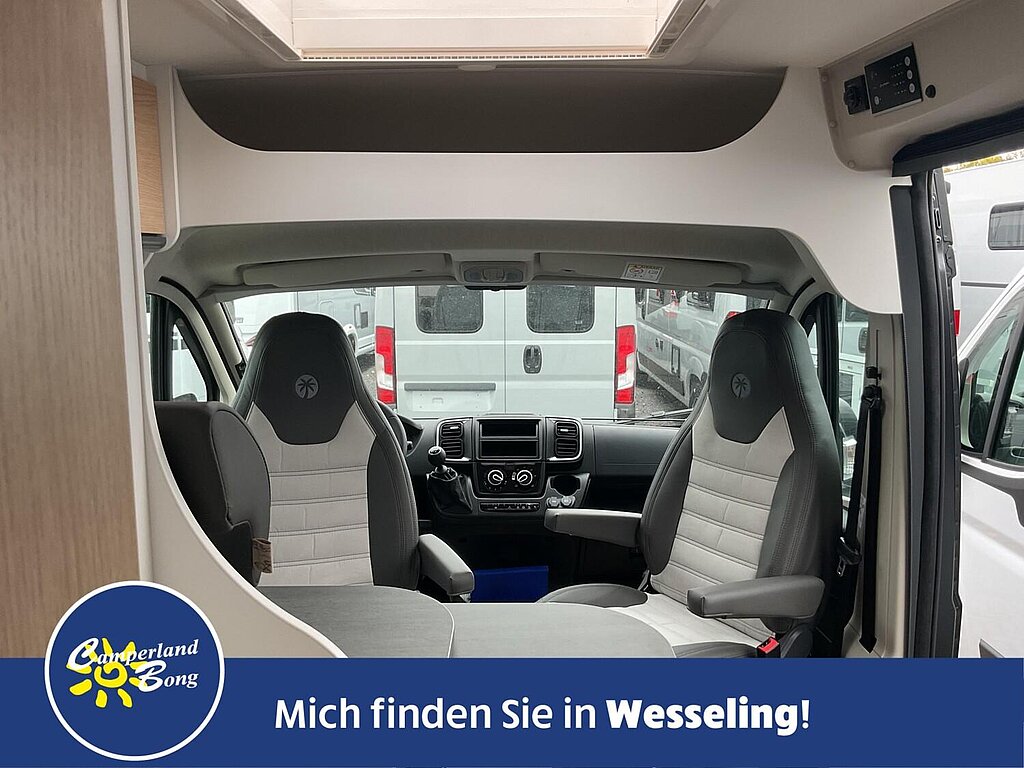 - Fahrer- und Beifahrersitz in Wohnraumstoff mit Doppelarmlehnen (Captain Chair)
