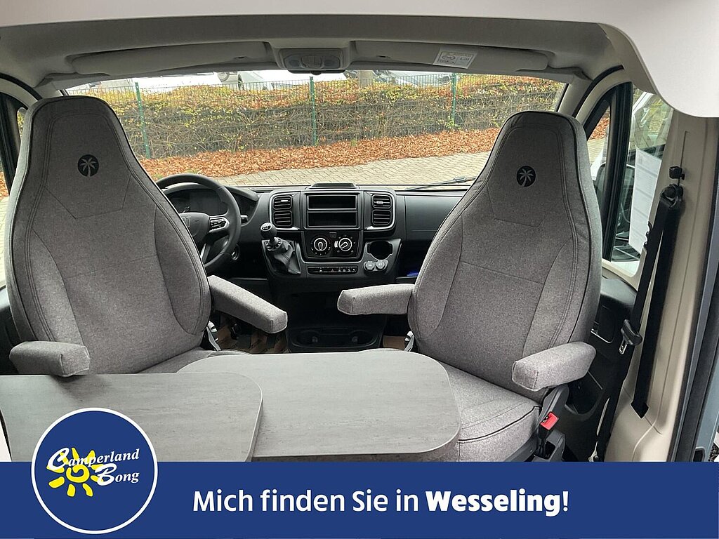 - Fahrer- und Beifahrersitz in Wohnraumstoff mit Doppelarmlehnen (Captain Chair)