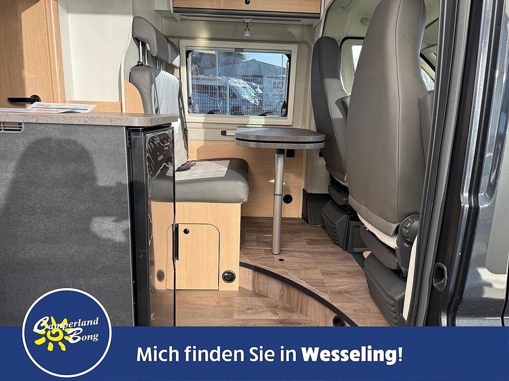 - Fahrer- und Beifahrersitz in Wohnraumstoff mit Doppelarmlehnen (Captain Chair)