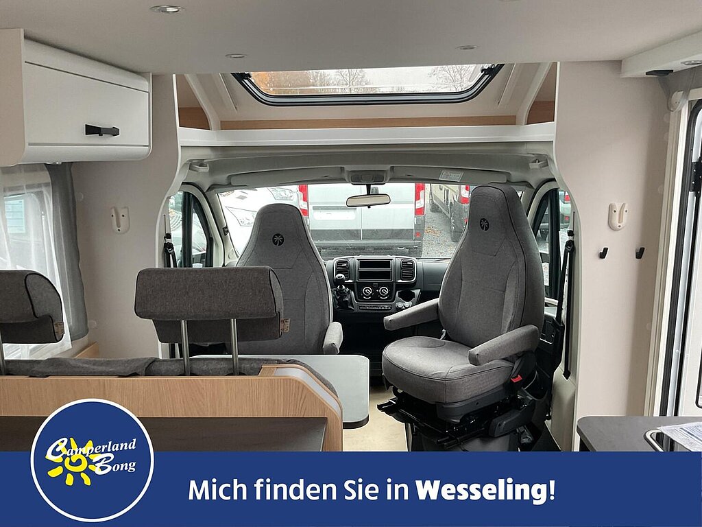 - Fahrer-/Beifahrersitz in Wohnraumstoff mit Doppelarmlehnen (Captain Chair)