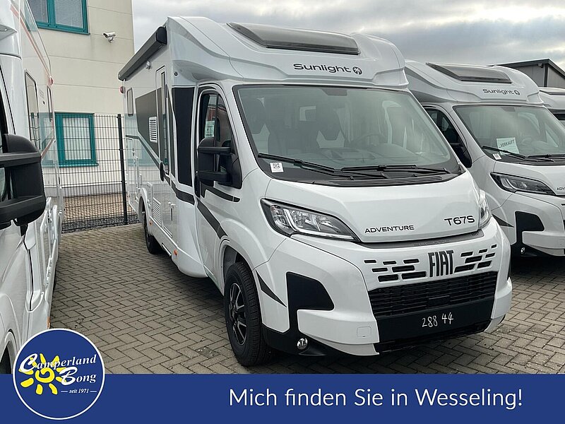 - Adventure Ausstattung 67 (Fiat Ducato 3.500 kg | 2.2 Multijet | 103 kW | 140 PS Euro 6 | 6-Gang-Schaltgetriebe, Chassisfarbe Weiß, Adventure Beklebung, Wohnwelt Adventure, Design Applikation Heck, Fenster in Fronthaube, Rahmenfenster, 2. Außenstauraumklappe (Größe modellabhängig), Großer Kühlschrank 156 l mit separatem Frosterfach 29 l, Bettenumbau Einzelbett zu Doppelbett, Paket One Black (Markise, Fahrradträger 3-fach), Bridge Light, Komfort Eingangstür mit Fenster, Fliegengittertür (einteilig), Panoramadachhaube 70 x 50 cm, Klarglasdachhaube 40 x 40 cm, Stoßfänger lackiert, Skid Plate Schwarz, Nebelscheinwerfer, Lenkrad & Schaltknauf in Lederausführung, Luftauslässe mit Applikationen Silber (Techno-Trim), 16" Alufelgen Bi-Color)