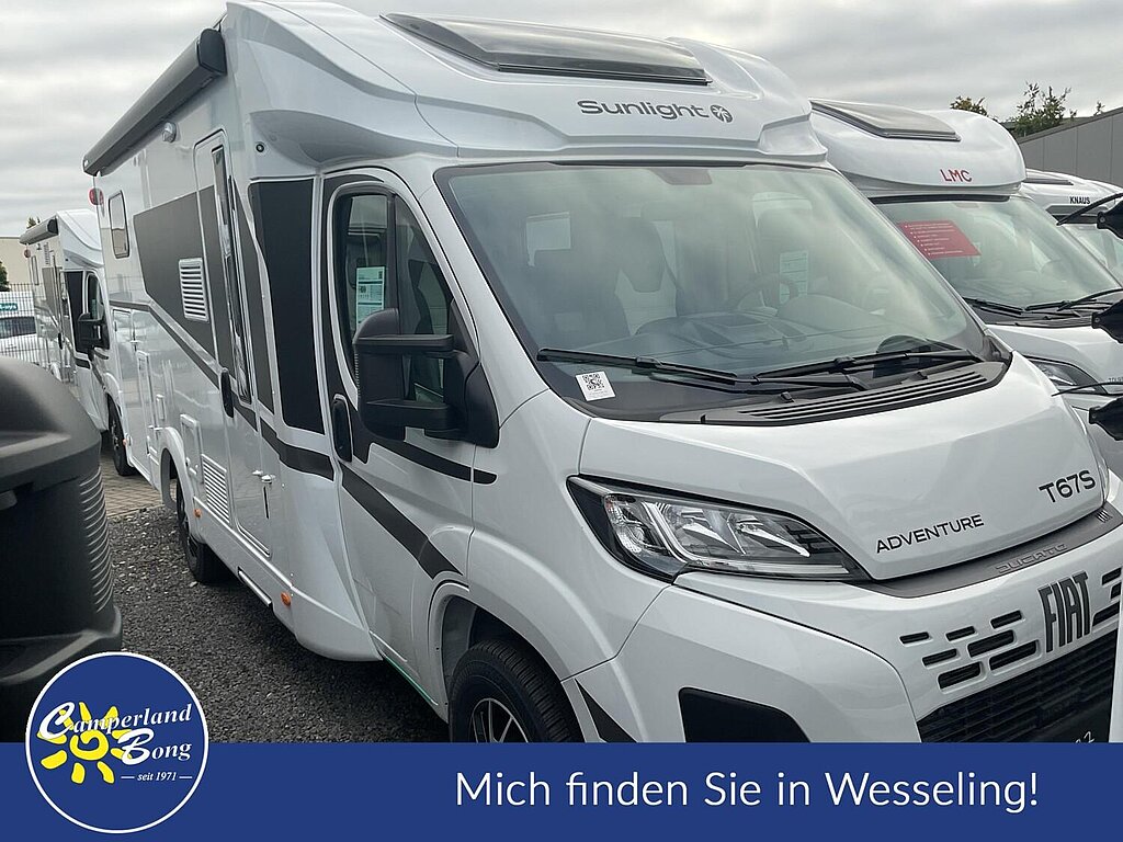 - Adventure Ausstattung 67S (Fiat Ducato 3.500 kg | 2.2 Multijet | 103 kW | 140 PS Euro 6 | 6-Gang-Schaltgetriebe, Chassisfarbe Weiß, Adventure Beklebung, Wohnwelt Adventure, Design Applikation Heck, Fenster in Fronthaube, Rahmenfenster, 2. Außenstauraumklappe (Größe modellabhängig), Großer Kühlschrank 156 l mit separatem Frosterfach 29 l, Bettenumbau Einzelbett zu Doppelbett, Paket One Black (Markise, Fahrradträger 3-fach), Bridge Light, Komfort Eingangstür mit Fenster, Fliegengittertür (einteilig), Panoramadachhaube 70 x 50 cm, Klarglasdachhaube 40 x 40 cm, Stoßfänger lackiert, Skid Plate Schwarz, Nebelscheinwerfer, Lenkrad & Schaltknauf in Lederausführung, Luftauslässe mit Applikationen Silber (Techno-Trim), 16" Alufelgen Bi-Color)