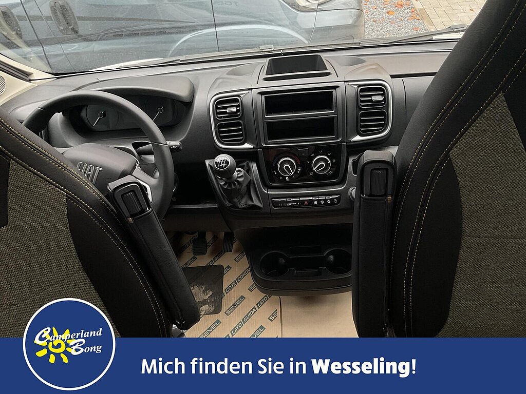 - Adventure Ausstattung 68C (Fiat Ducato 3.500 kg | 2.2 | 103 kW | 140 PS Euro 6 | 6-Gang-Schaltgetriebe, Fiat Weiß, Adventure Beklebung, Wohnwelt Adventure, Design Applikation Heck, Fenster in Fronthaube, Rahmenfenster, 2. Außenstauraumklappe (Größe modellabhängig), Großer Kühlschrank 156 l mit separatem Frosterfach 29 l, Bettenumbau Einzelbett zu Doppelbett, Paket One Black (Markise, Fahrradträger 3-fach), Bridge Light, Komfort Eingangstür mit Fenster, Fliegengittertür (einteilig), Panoramadachhaube 70 x 50 cm, Klarglasdachhaube 40 x 40 cm, Stoßfänger lackiert, Skid Plate Schwarz, Nebelscheinwerfer, Lenkrad & Schaltknauf in Lederausführung, Luftauslässe mit Applikationen Silber (Techno-Trim), 16" Alufelgen Bi-Color)