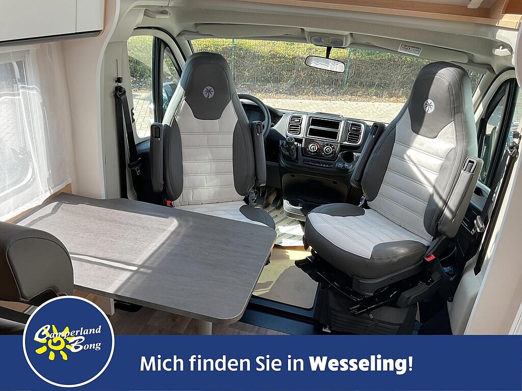 - Fahrer-/Beifahrersitz in Wohnraumstoff mit Doppelarmlehnen (Captain Chair)