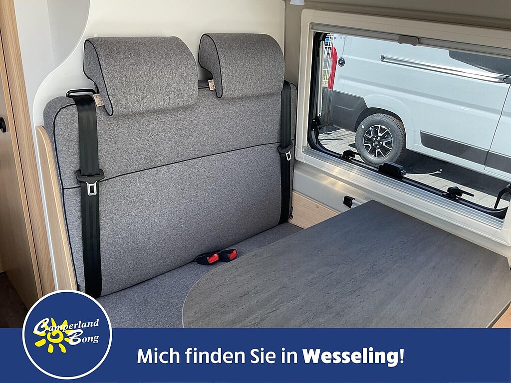 - Fahrer-/Beifahrersitz in Wohnraumstoff mit Doppelarmlehnen (Captain Chair)